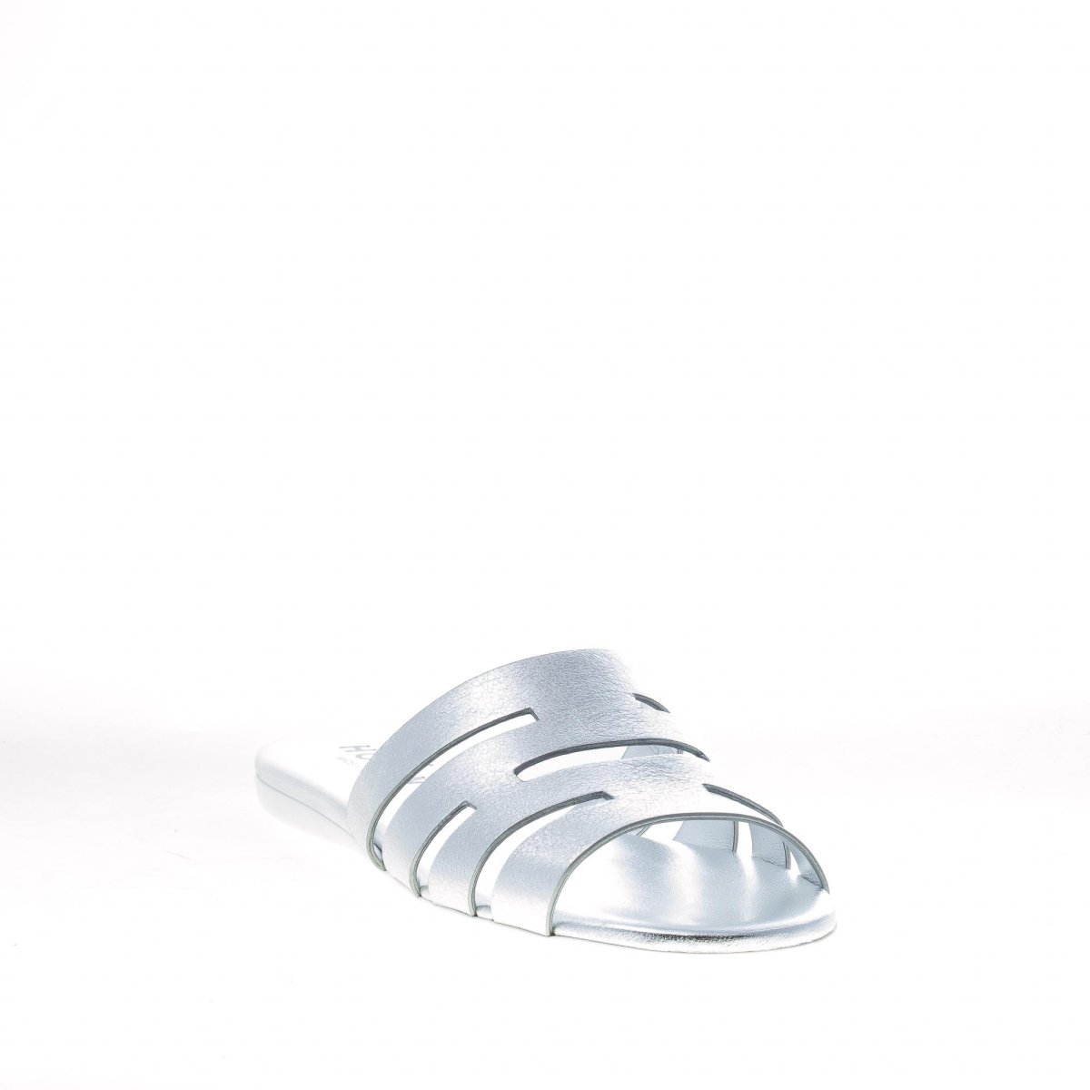 Valencia black leather slide sandal with a front maxi band and H pattern cut-outs. Heel 1 cm. Rubber sole
