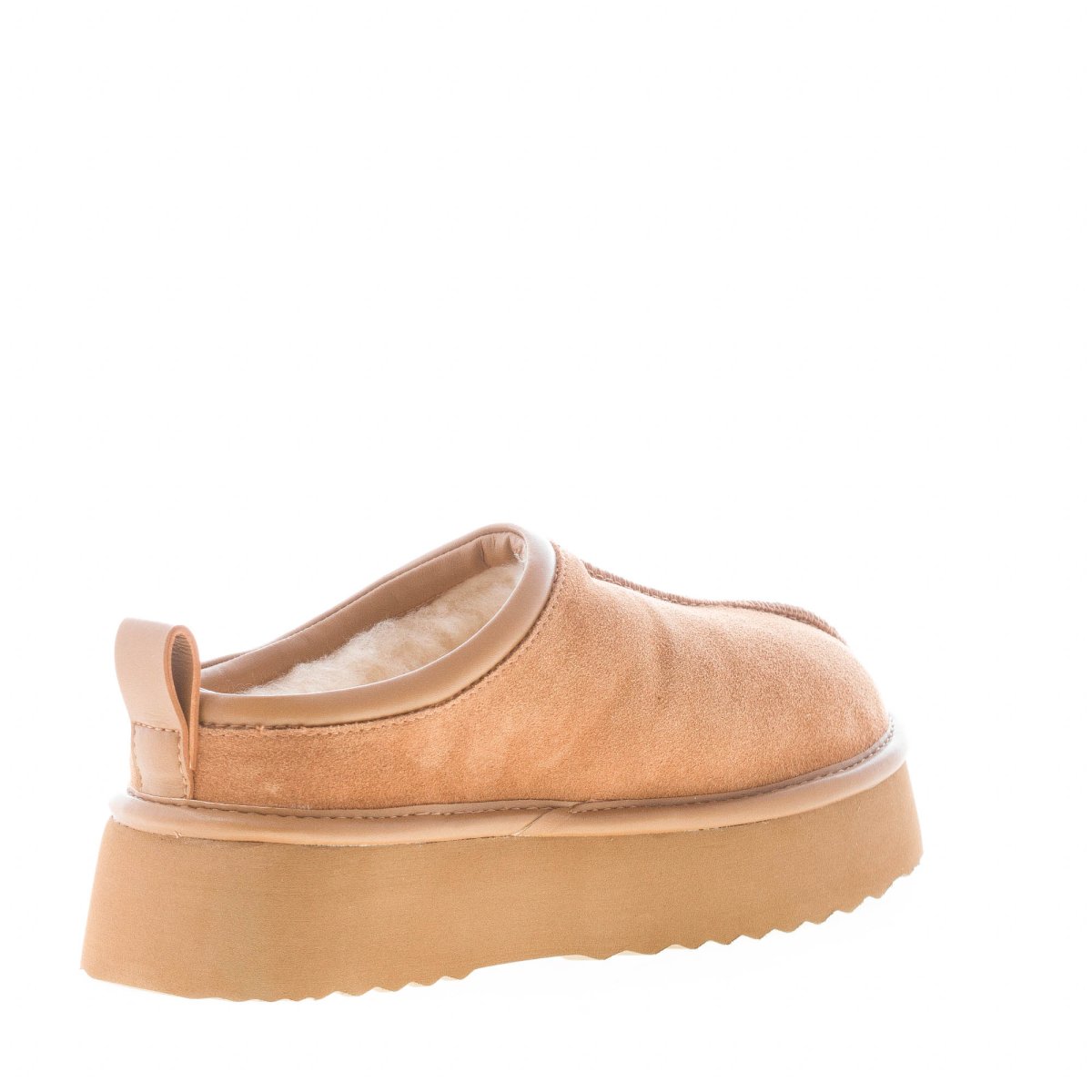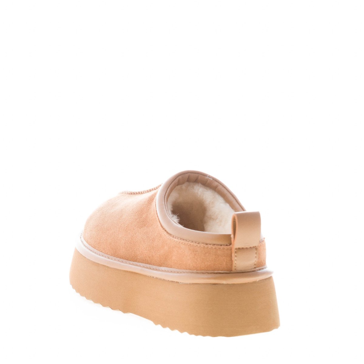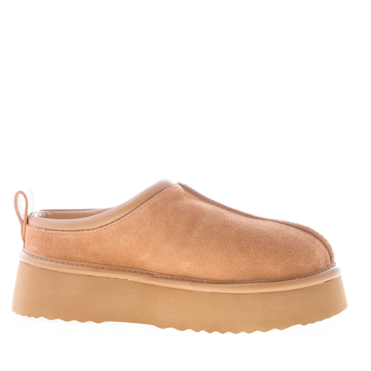 Sabot Mars realizzato in camoscio taupe con fodera interna e plantare in pelliccia. Suola platform in gomma di circa 5 cmย