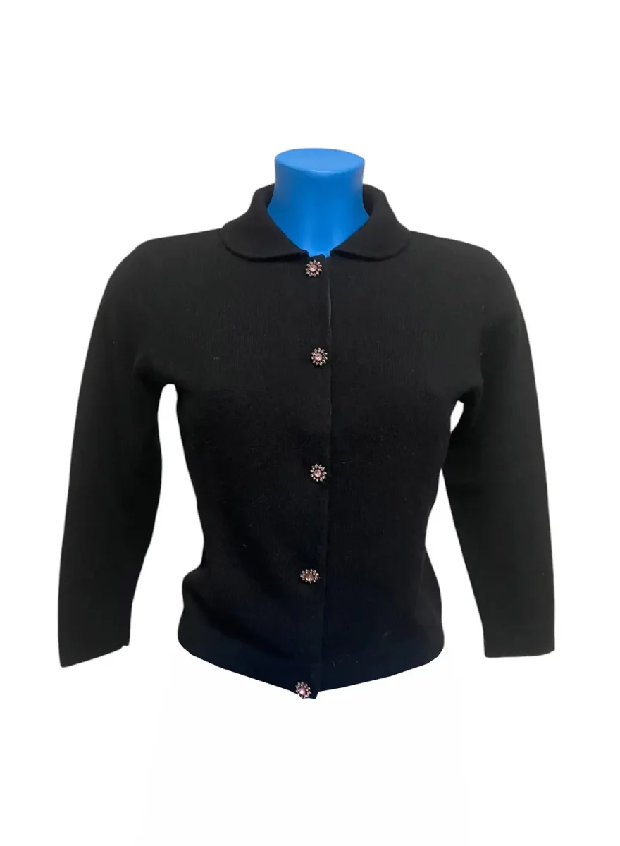 I.N.C International Concepts – S – Cardigan in cashmere nero con bottoni gioiello