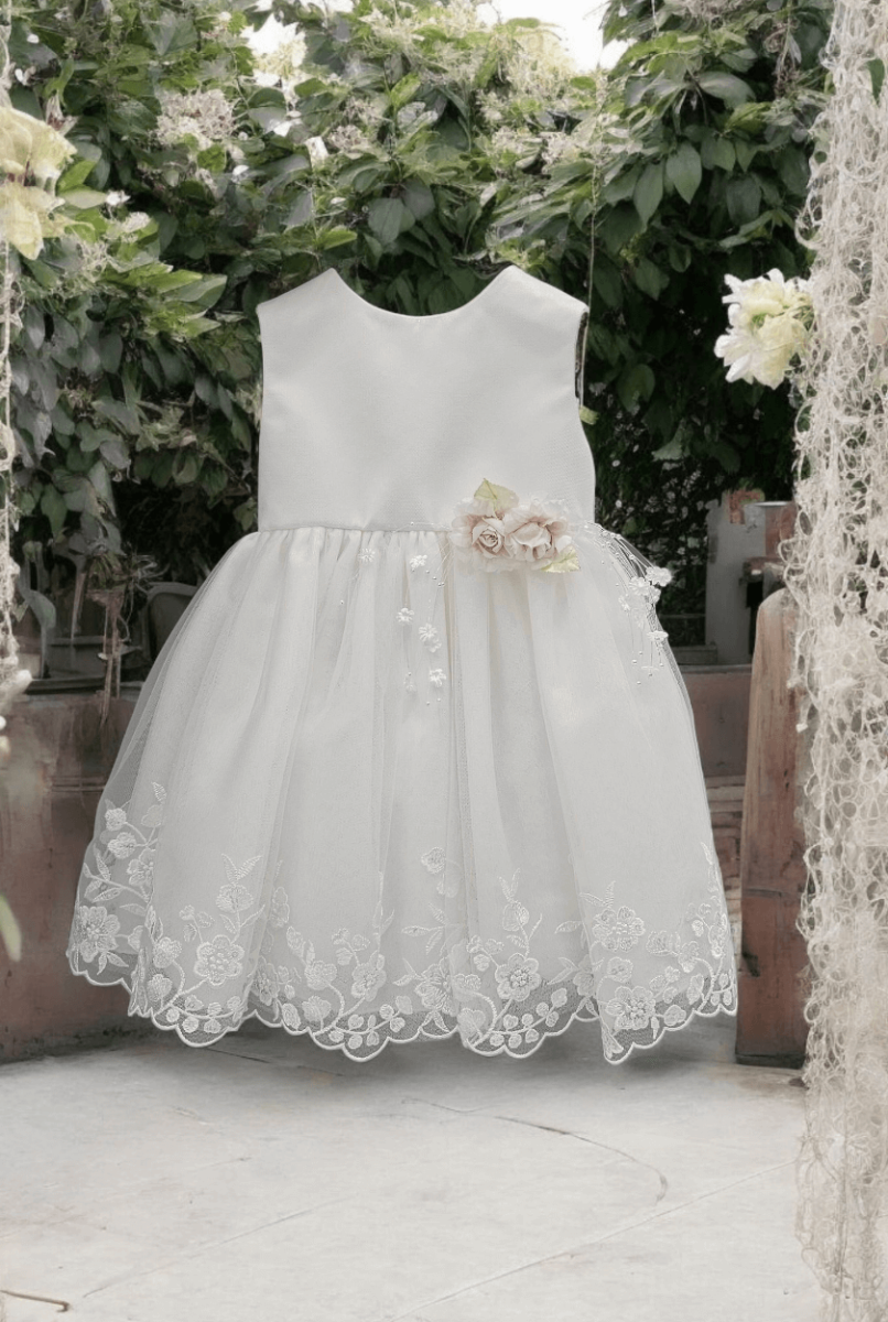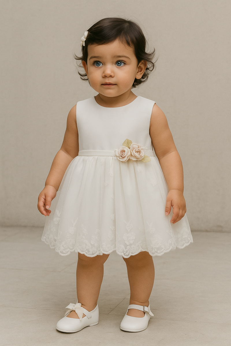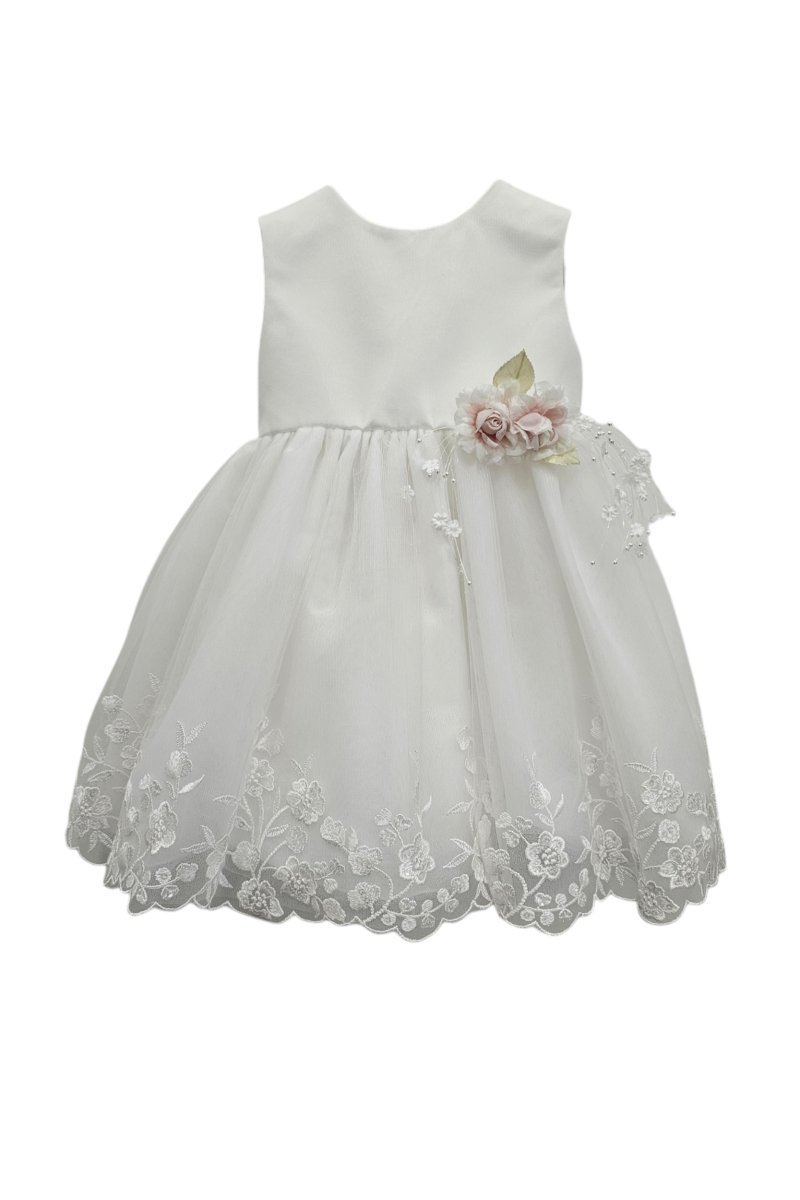 Abito โ In tulle ricamato con paillettes โ Tessuto leggero โ Giromanica โ Fiore applicato in vita โ Fascia in vita regolabile โ Chiusura con zip โ Vestibilitร : Normale โ Composizione: 23% cotone 26% Poliestere 52% acrilico