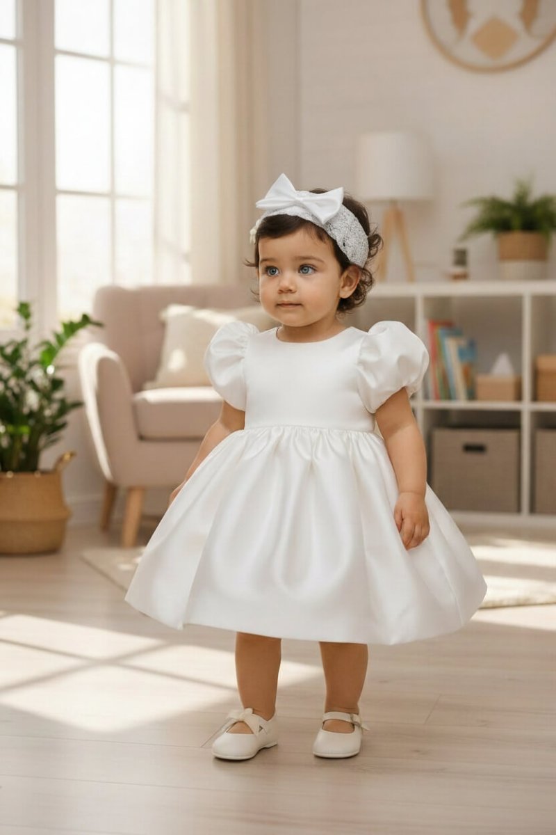 Perfetta da abbinare a un vestitino da battesimo, a un abito da damigella o a un completo cerimonia, questa fascetta aggiunge un tocco di dolcezza e classe, rendendo ogni momento ancora piรน speciale.