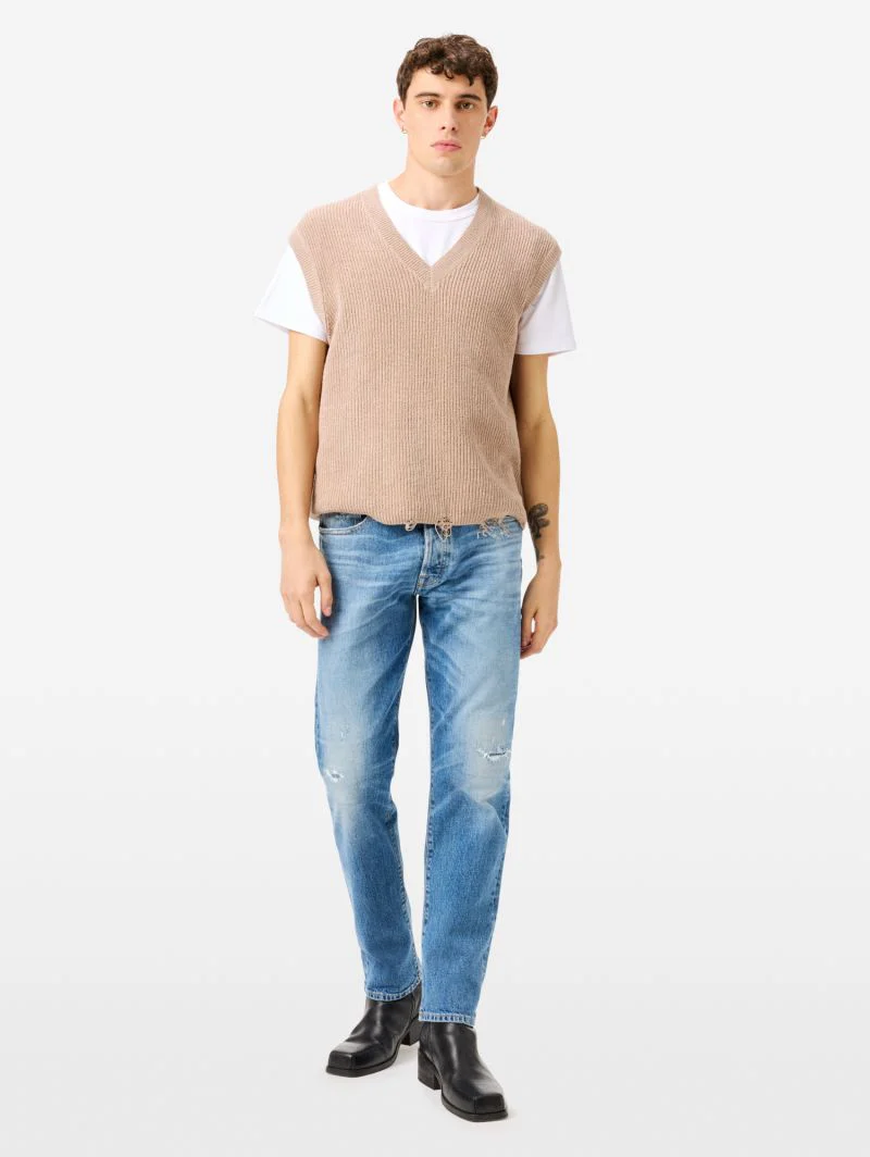 Jeans uomo dal taglio straight fit a sigaretta con vita dritta scesa, ispirato all’estetica anni Novanta. Costruiti per durare e migliorare con ogni utilizzo, combinano comfort quotidiano e carattere autentico.