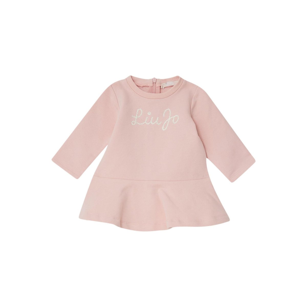 Abito in felpa di cotone stretch Logo sul davanti Taglio girocollo Maniche lunghe Balza al fondo Chiusura con zip sul retro