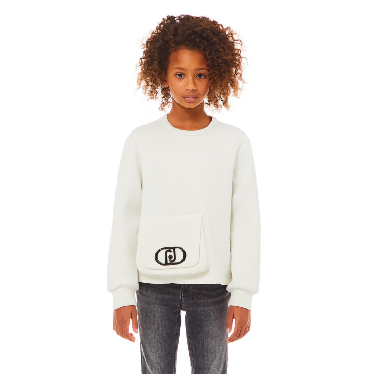 Felpa in misto viscosa stretch Taglio girocollo Maniche lunghe Maxi tasca in neoprene Logo sul davanti