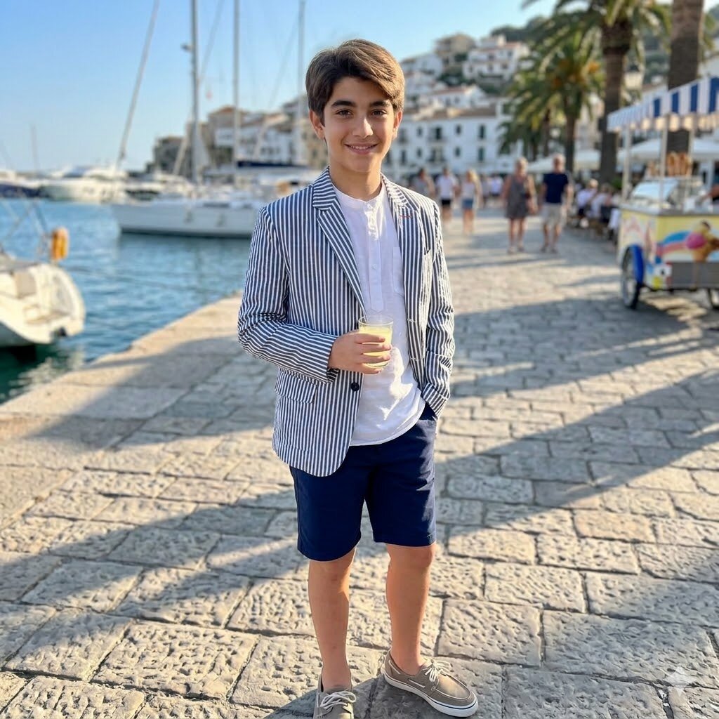 Giacca in cotone fantasia rigata bianca e blu