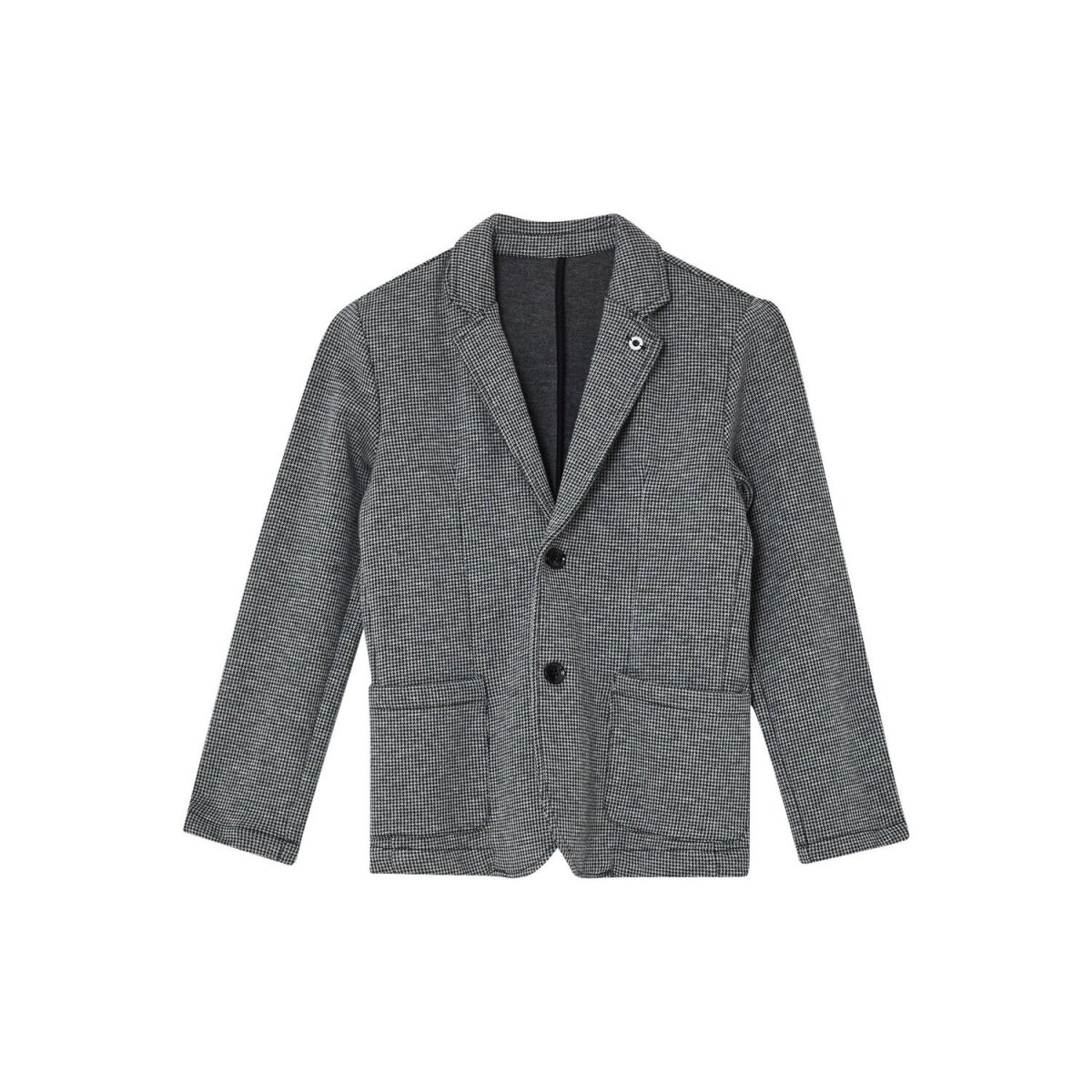 Blazer in tessuto stretch Revers classico Tasche sui lati Spacco sul retro Logo in metallo sul rever Chiusura monopetto con bottoni