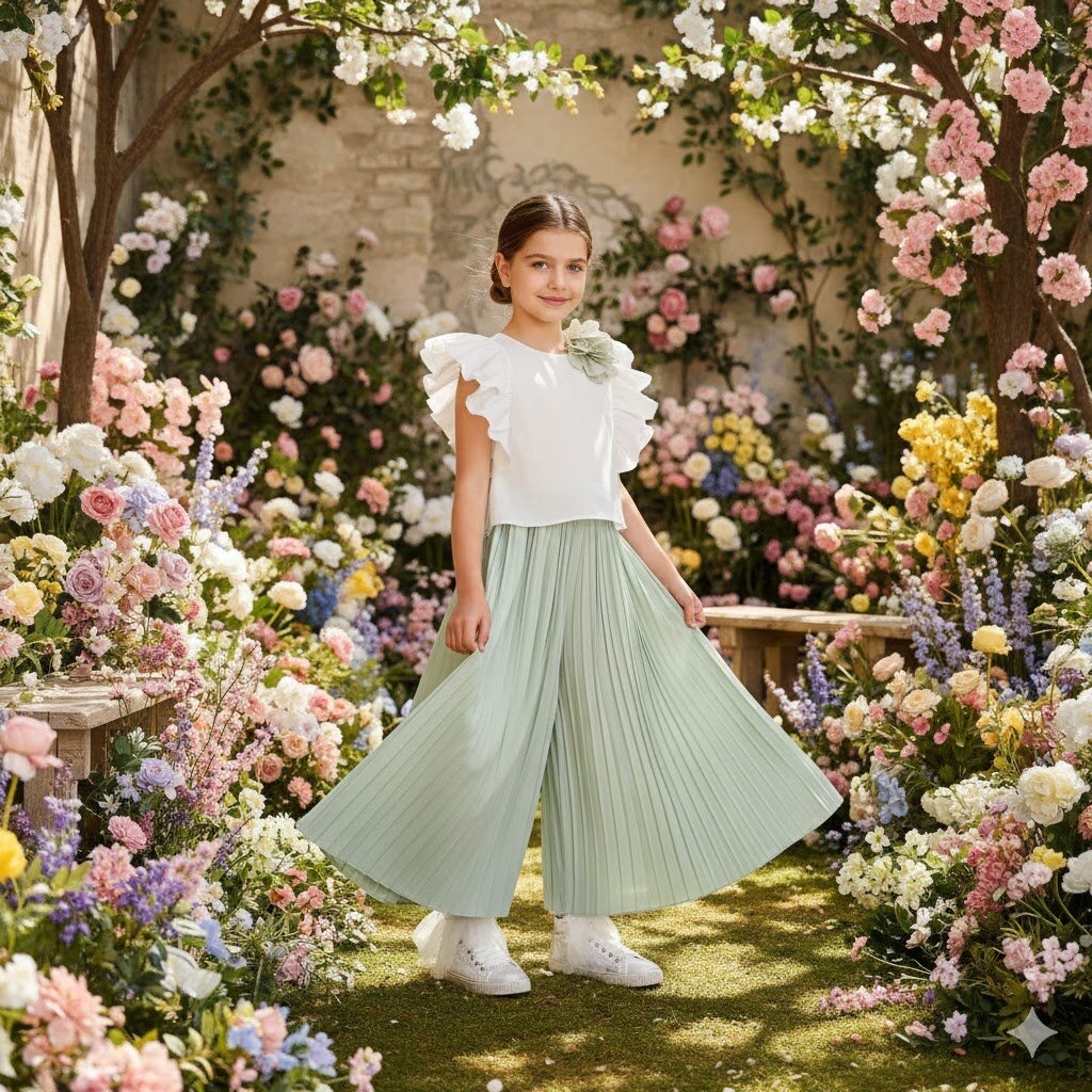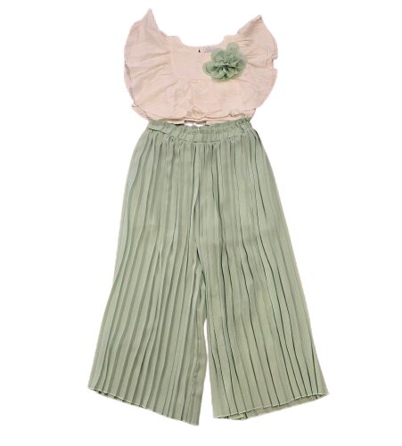 Completo Due Pezzi Plissé Eleganza e Leggerezza Rendi ogni occasione speciale un momento indimenticabile con questo raffinato completo a due pezzi. Caratterizzato da una tonalità verde salvia delicata e senza tempo, questo outfit unisce il design contemporaneo alla grazia dei classici dettagli plissé. Dettagli del Prodotto: Top Elegante: Taglio a canotta con scollo rotondo, caratterizzato da un design a doppio strato che dona movimento e volume naturale. Pantaloni : Ampi e fluidi, realizzati interamente con una lavorazione plissé che crea un effetto scenografico a ogni passo. Tessuto Premium: Realizzato in un tessuto leggero e traspirante, perfetto per cerimonie, eventi estivi…