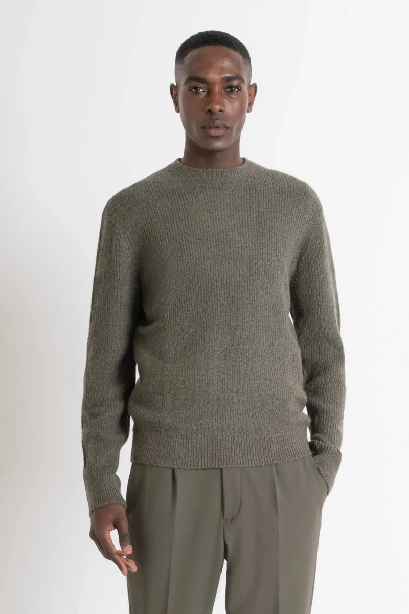 Vestibilitร regular per questo maglione girocollo griffato Antony Morato. Realizzato in tinta unita, si rivela un capo caldo e avvolgente grazie alla lana mohair presente nel filato. Il maglione รจ caratterizzato da linee classiche, arricchite dal movimento dato dalla trama a coste verticali all over. Completa il design una piccola placchetta metallica logata cucita sul retro del collo.