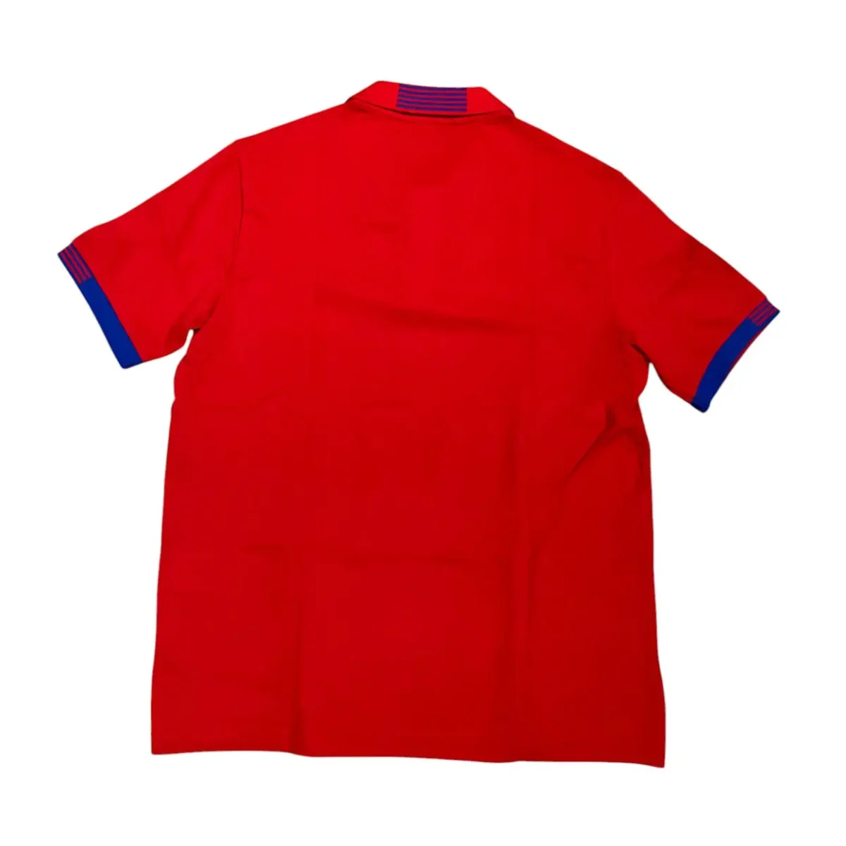 Colore rosso, rifiniture blu. Spacchi laterali. Vestibilità regolare classica.