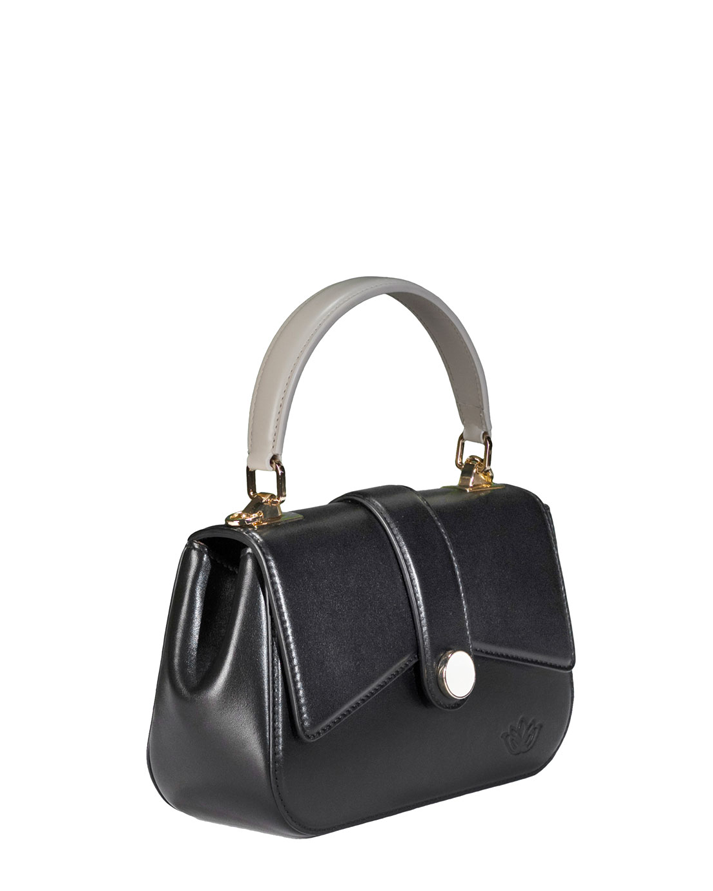 La patta frontale, impreziosita da un bottone perlato, si chiude con una pratica calamita, mentre il manico bombato aggiunge un tocco di classe e comfort. Per una maggiore versatilitร , MIA รจ dotata di una tracolla metallica groumette amovibile, che permette di indossarla sia a mano che a spalla.