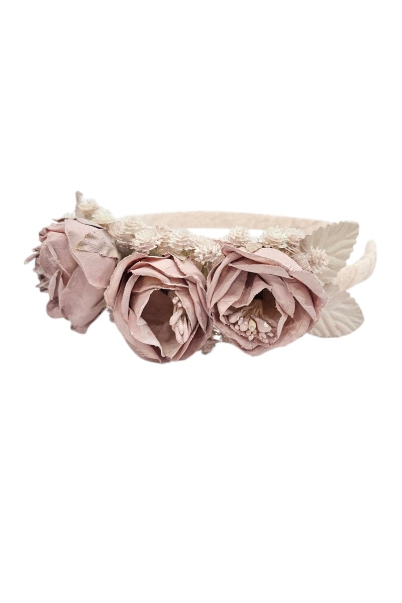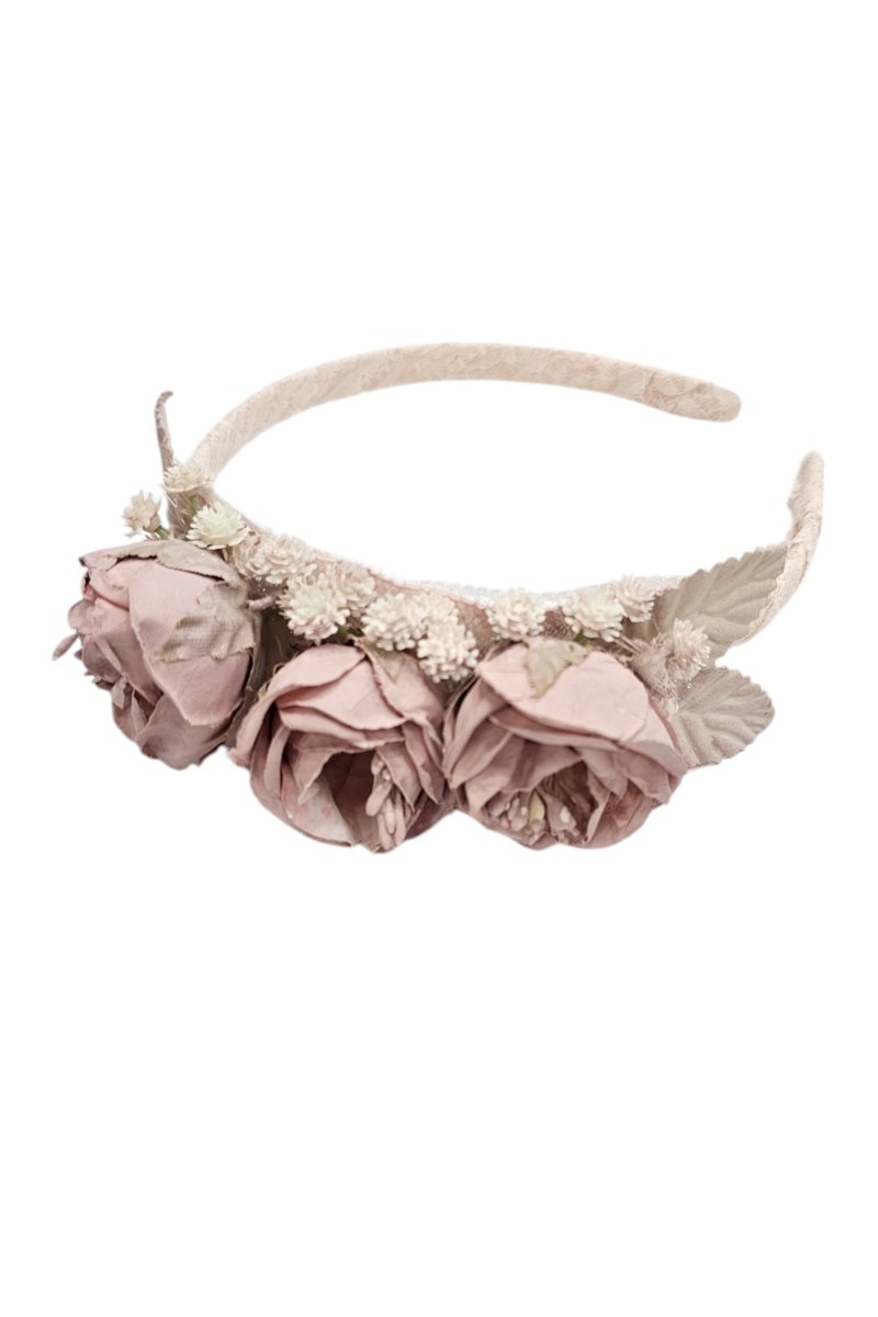 Cerchietto Mimilù è un accessorio prezioso e indispensabile, ideale da indossare su capelli sciolti o semiraccolti, per valorizzare abiti da cerimonia, come Prima Comunione o damigella. ● Modello con applicazioni a forma di fiore