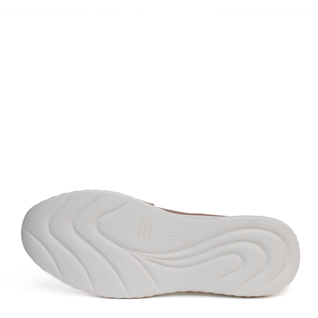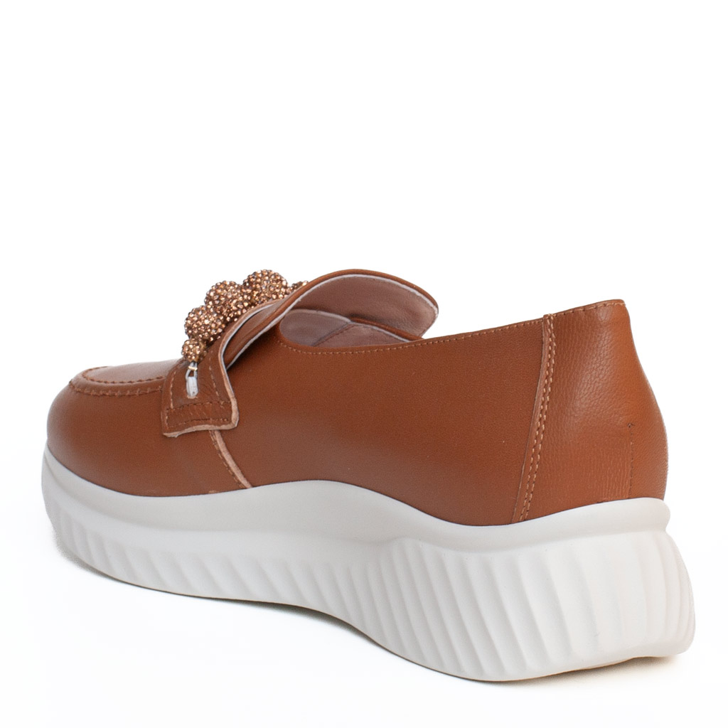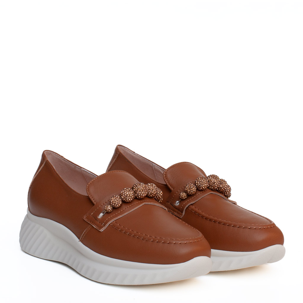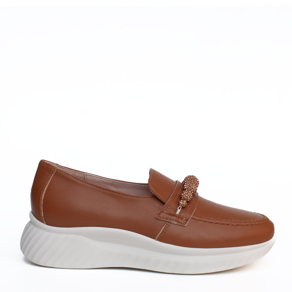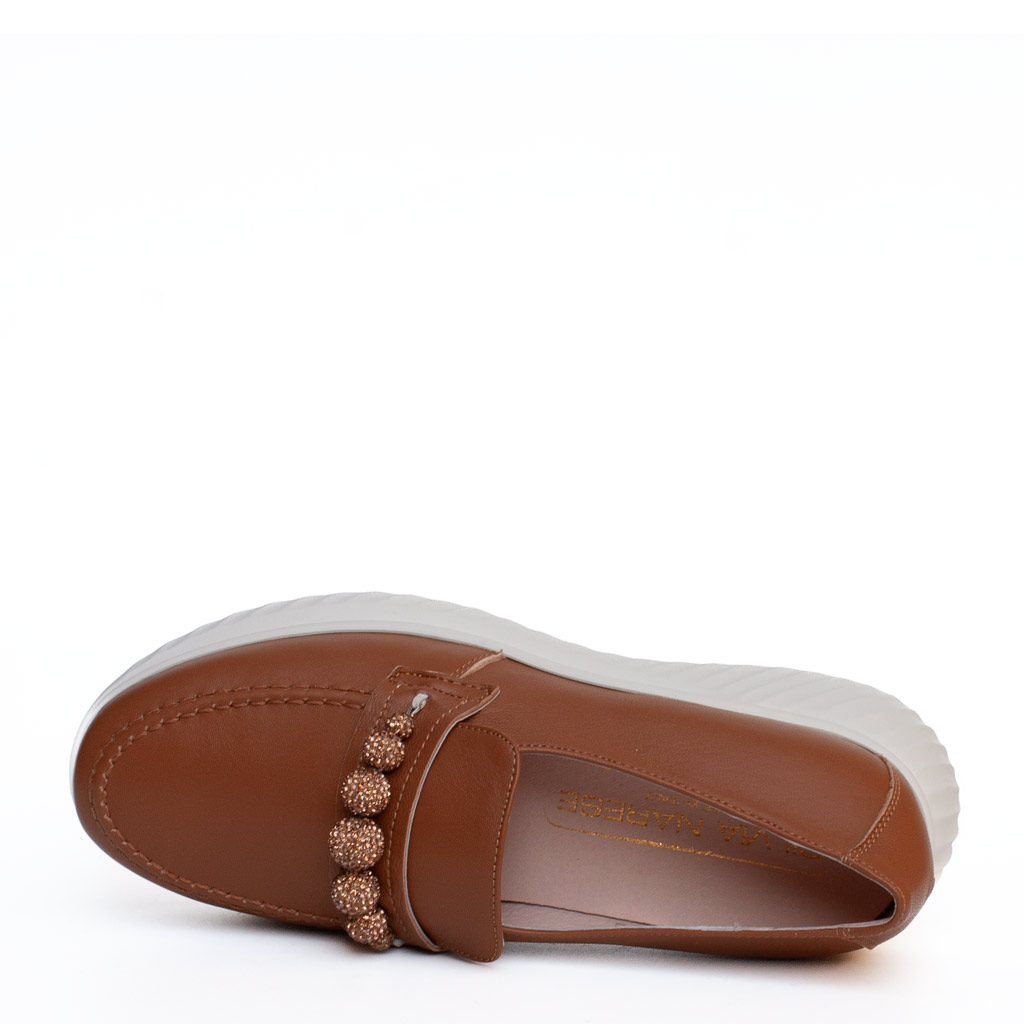 Mocassinoย in pelle. Accessorio morsetto con strass. Zeppa in gomma alta 4 cm. Made in Italy.