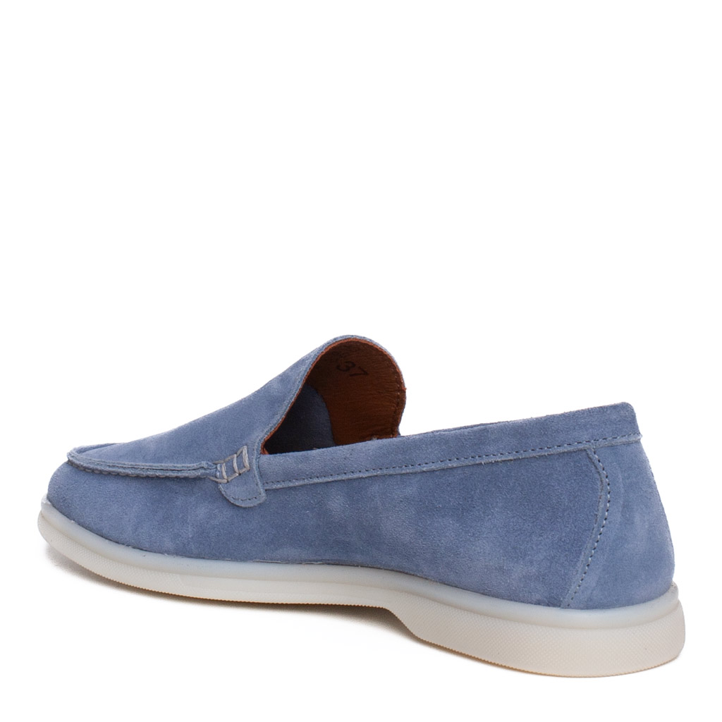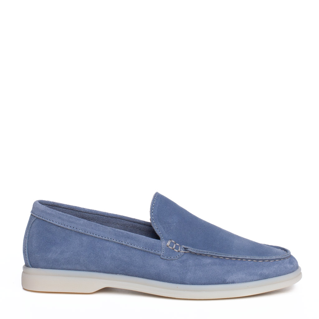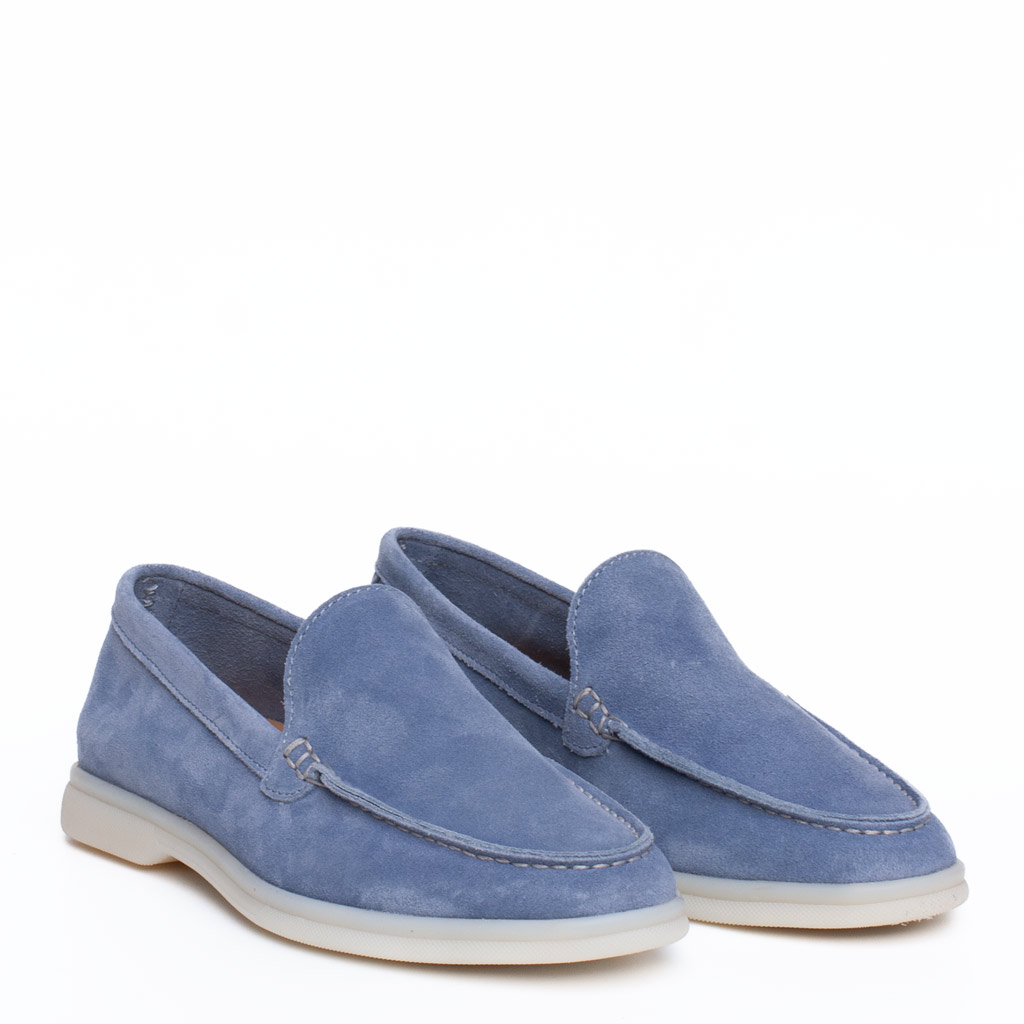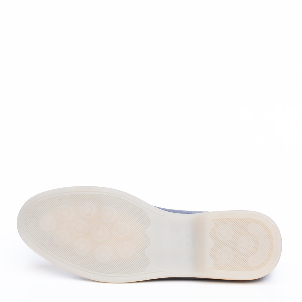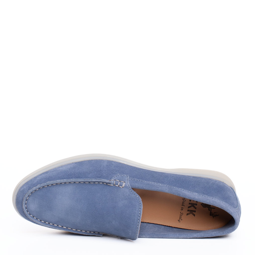 Scarpa in camoscio azzurro. Altezza tacco 2 cm. Soletta in pelle. Sfoderata. Suola in para. Made in Italy.