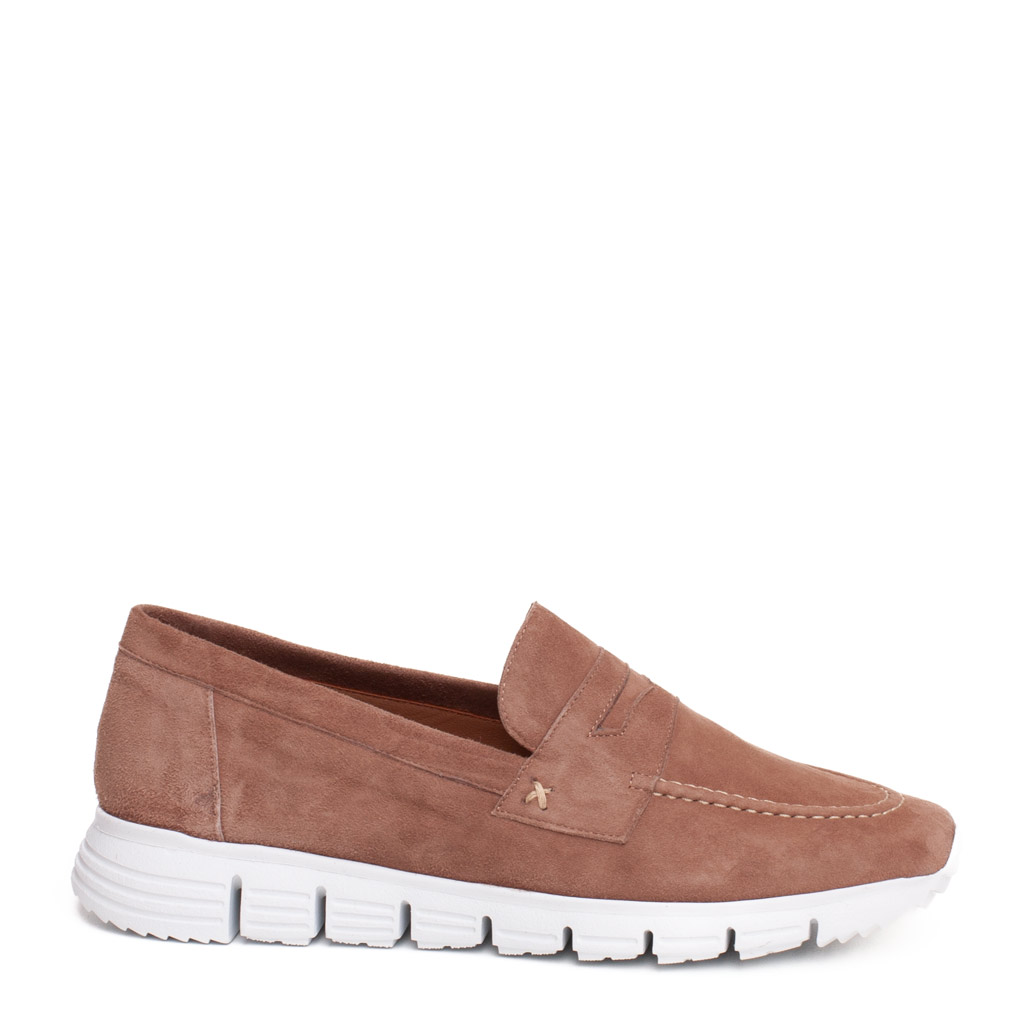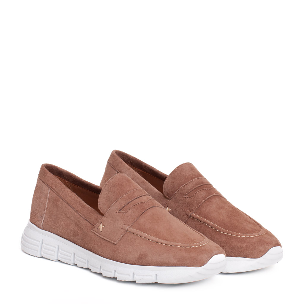 Mocassino in camoscio tortora