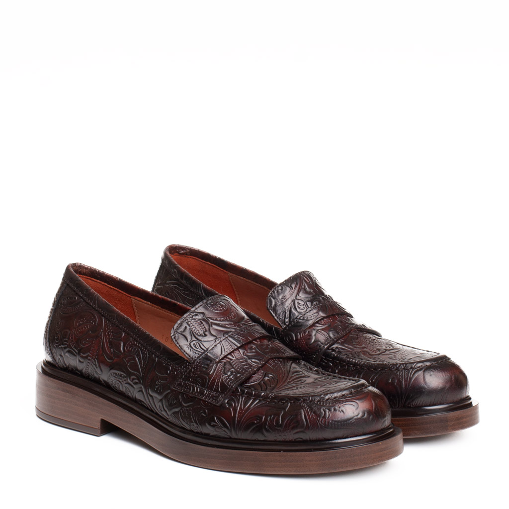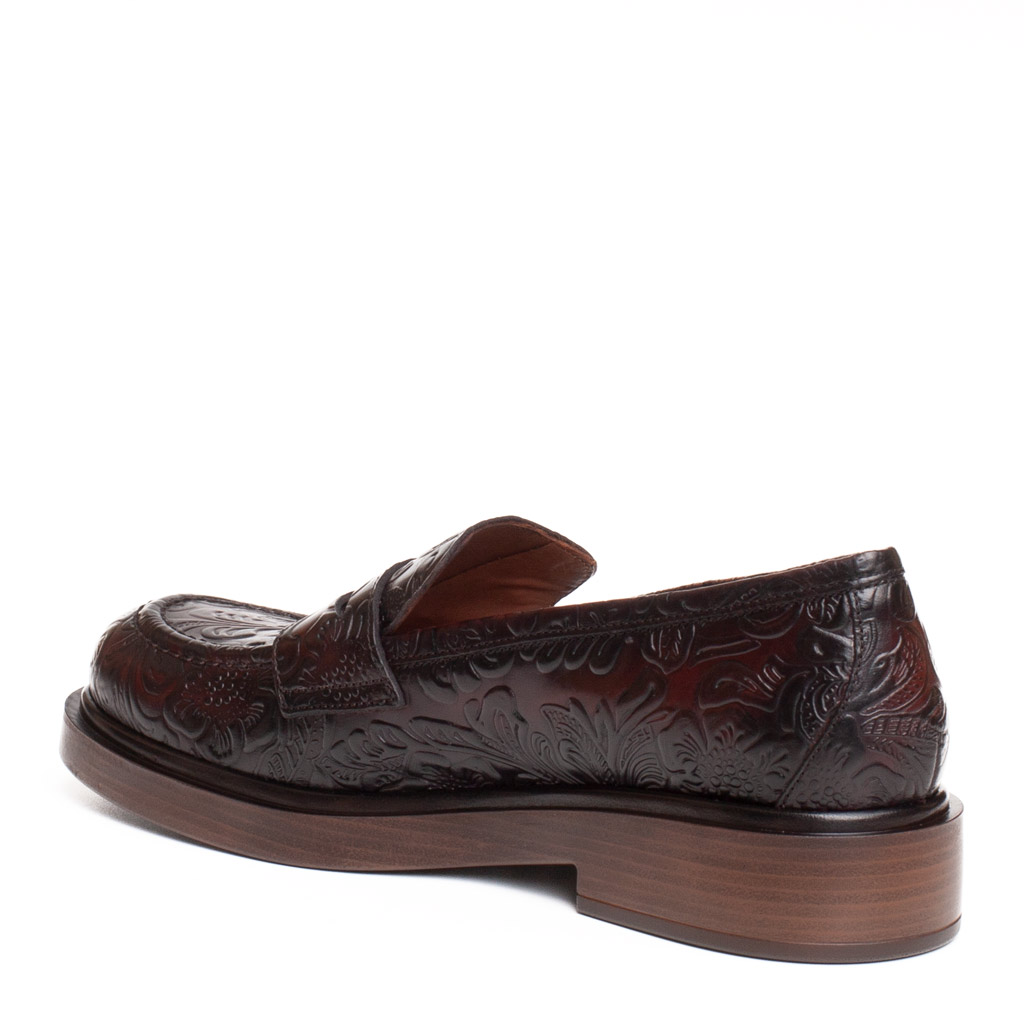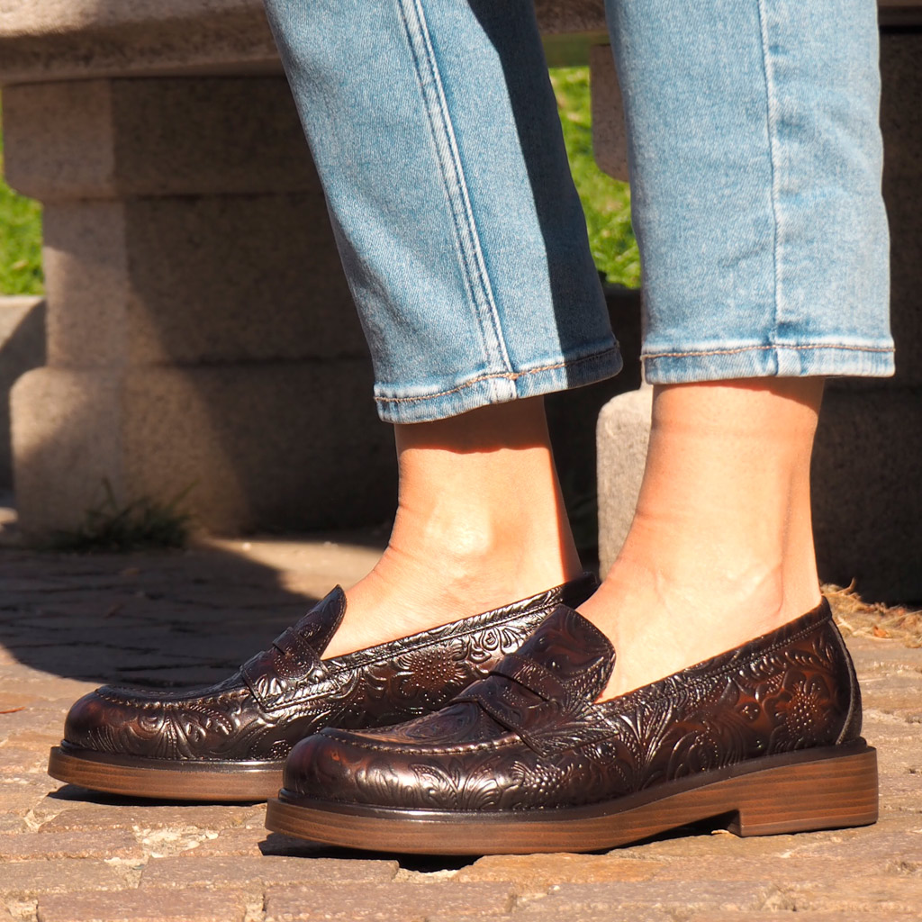 Mocassino Seline Marrone in Pelle Lavorata Pons Quintana