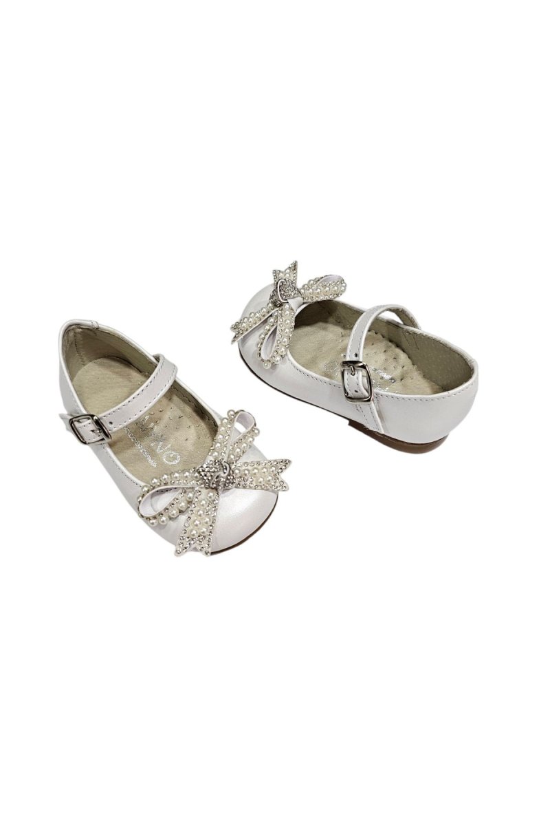 Scarpe ballerine con dettagli in rilievo, per uno stile Romantico. โ Dettagli con fiocco gioiello โ Modello con punta tonda โ Chiusura laterale โ In vera pelle