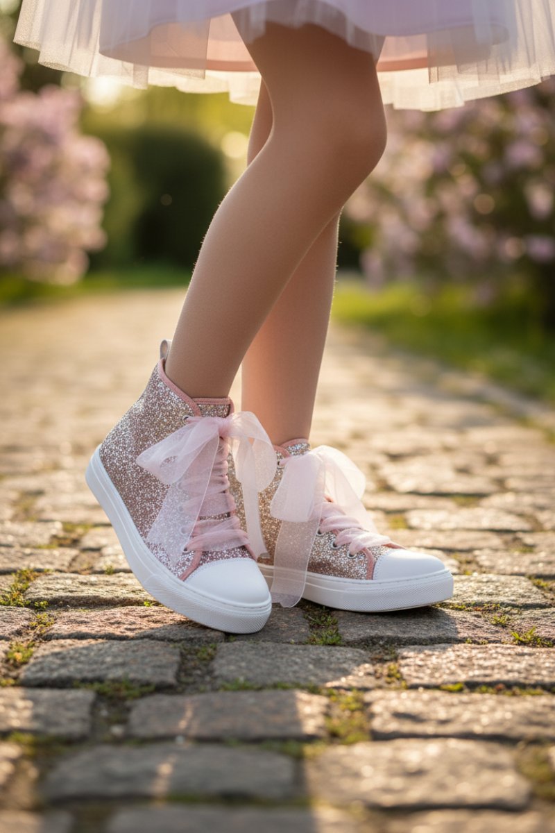 Modello converse glitter โ punta in pelle โ Glitter bianco โ Con stringhe in raso e cerniera โ Banda in pelle posteriore