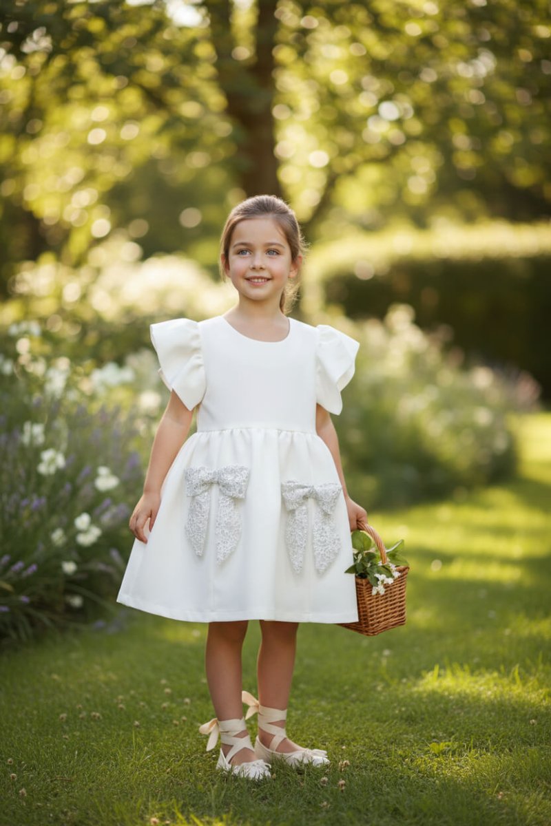 Abito โ Fiocchi particolari โ Maniche a sbuffo โ Chiusura con zip โ Vestibilitร : Normale โ Composizione: 89% poliestere 11% elastico