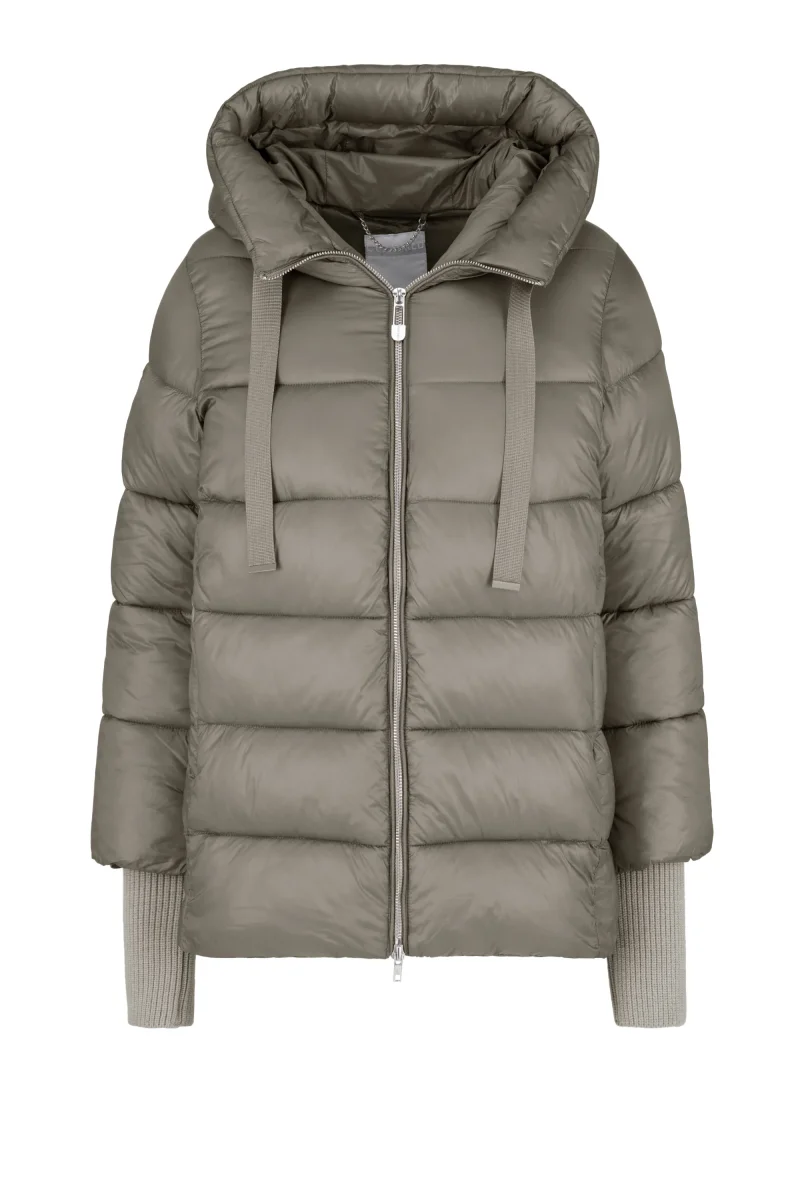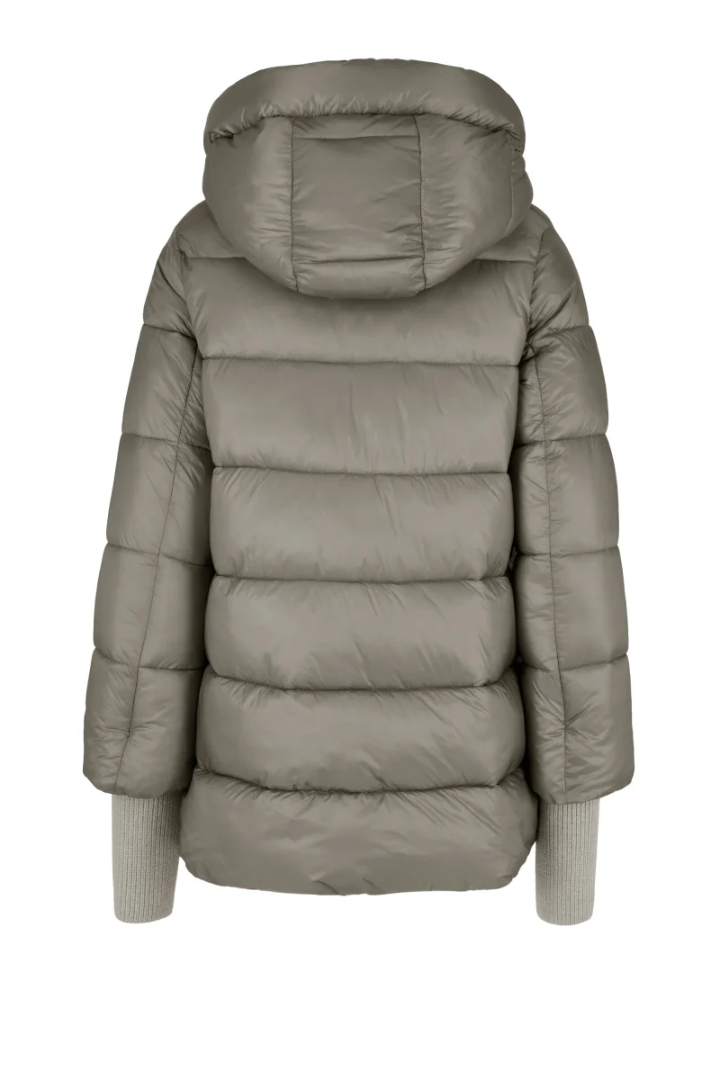 - La giacca trapuntata con cappuccio fisso presenta materiali lucidi per uno stile metropolitano
