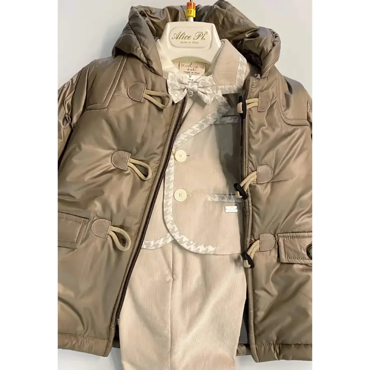 Un piumino che combina eleganza e comfort, perfetto per accompagnare il tuo neonato in ogni occasione con stile e calore.
