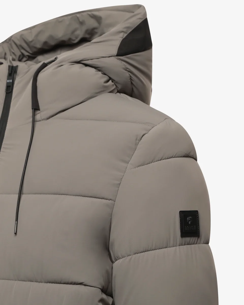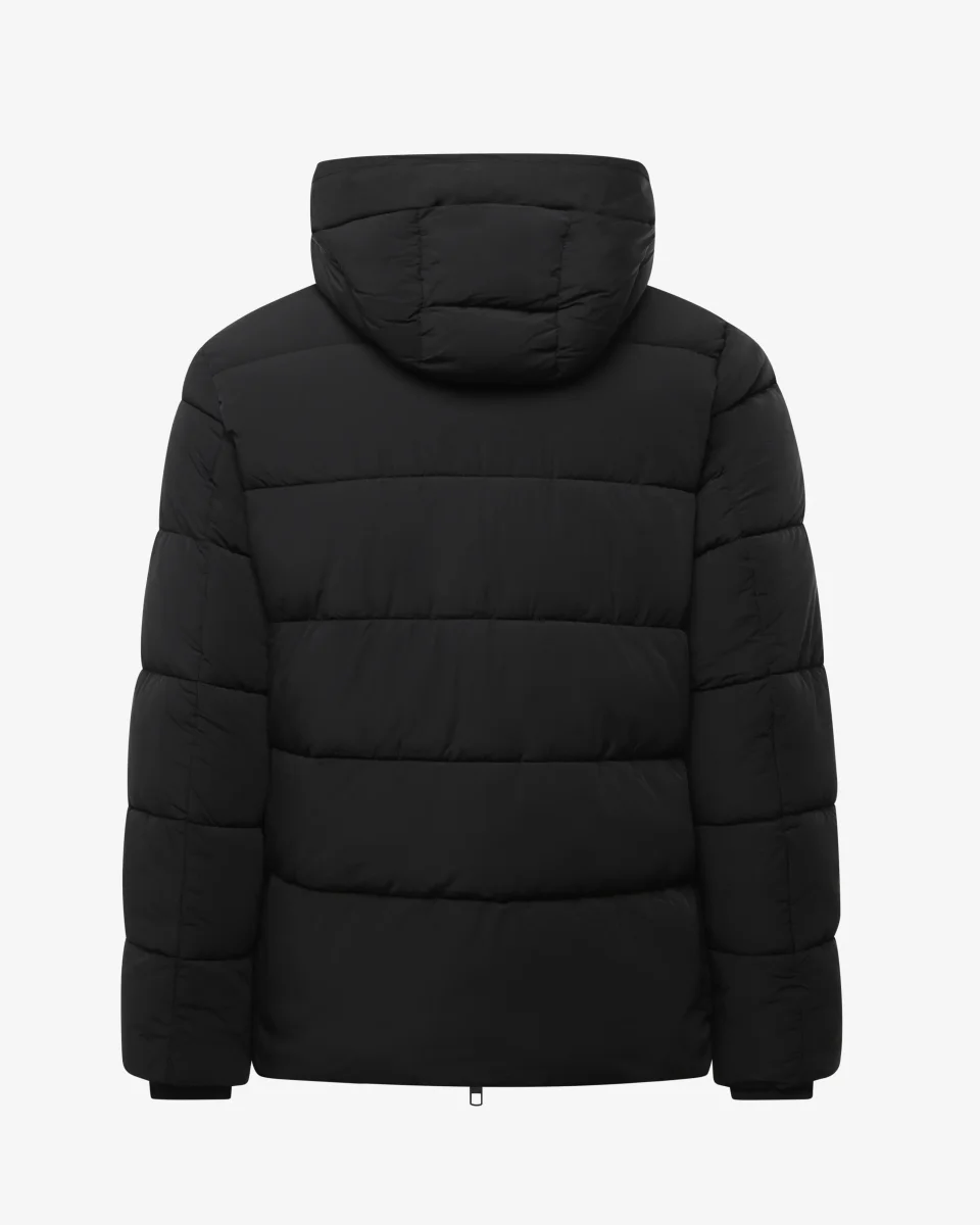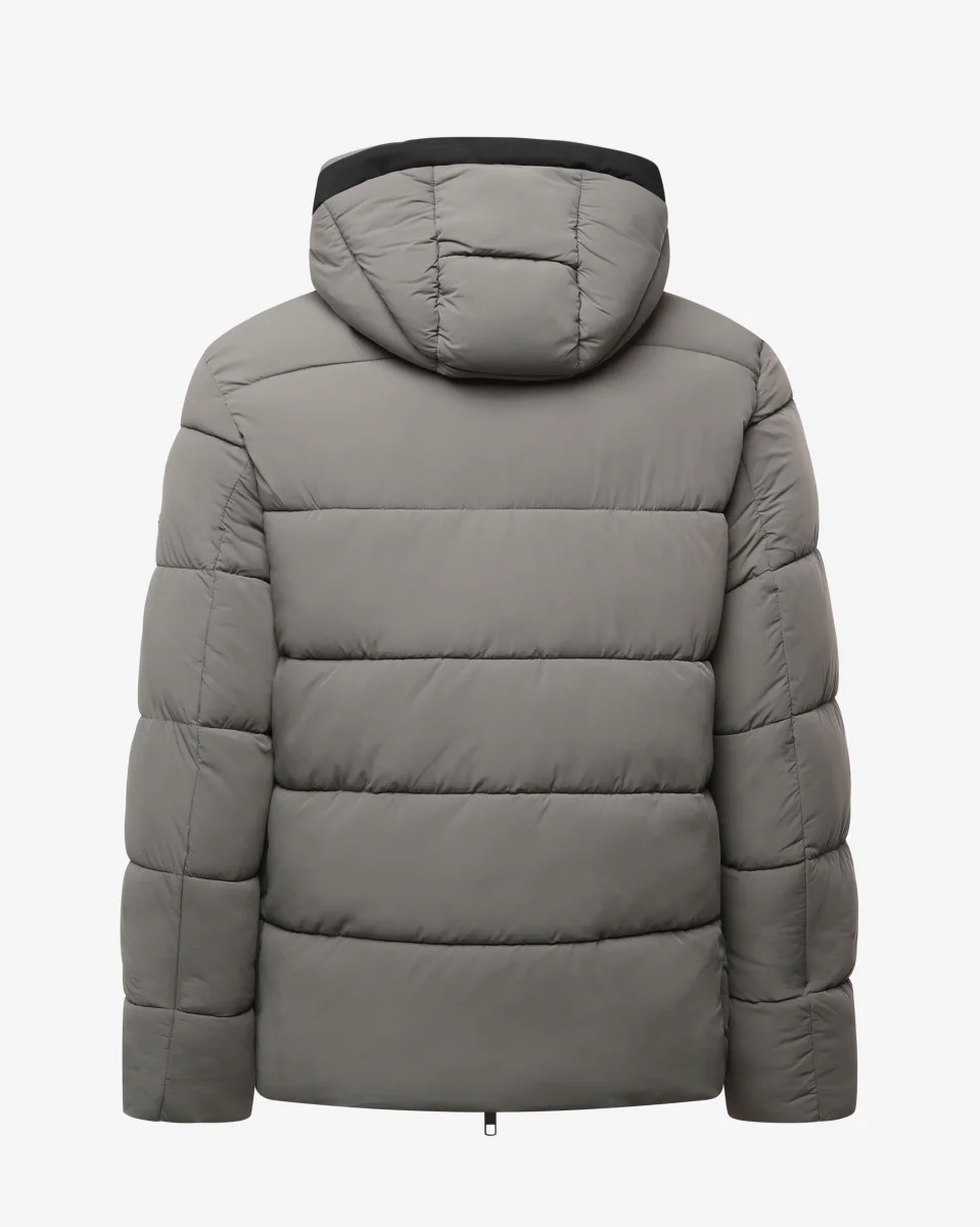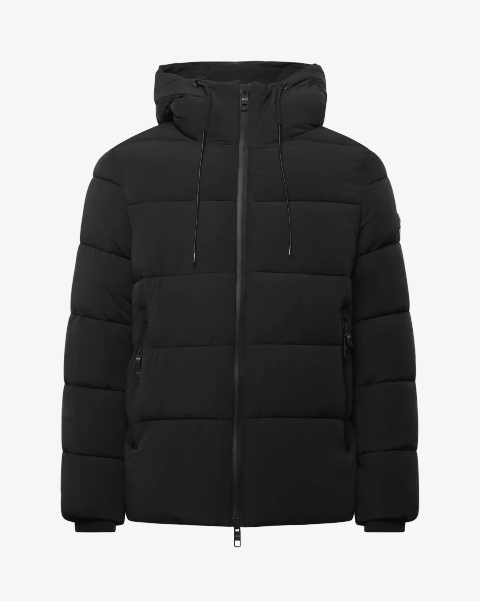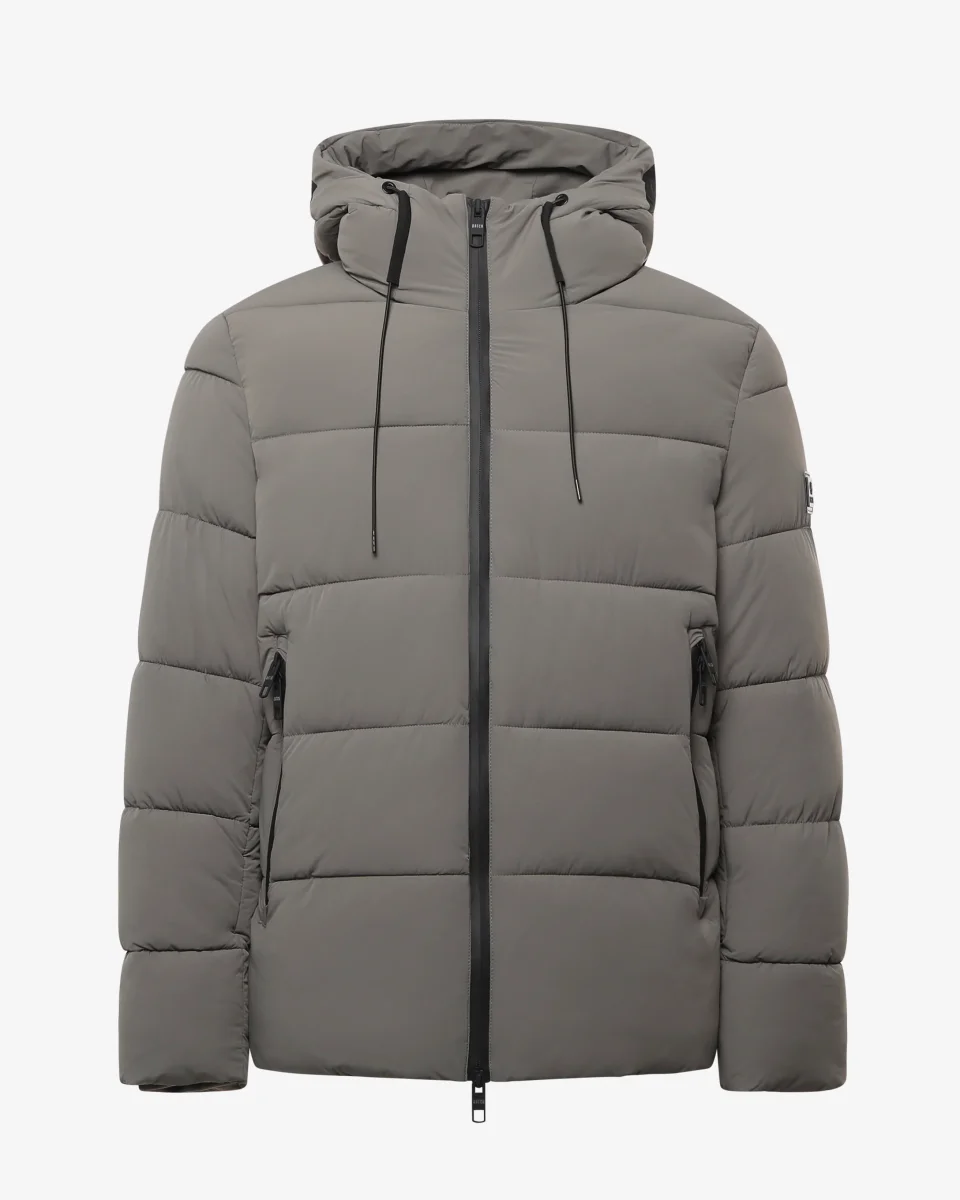 Giubbotto imbottito con cappuccio regolabile e chiusura frontale con zip termosaldata. Realizzato in tessuto tecnico liscio e resistente, offre comfort e protezione nelle giornate piรน fredde. Il design essenziale รจ arricchito da un micrologo laterale sul braccio e tasche laterali con zip invisibile. Vestibilitร regolare, perfetta per uno stile casual e contemporaneo.