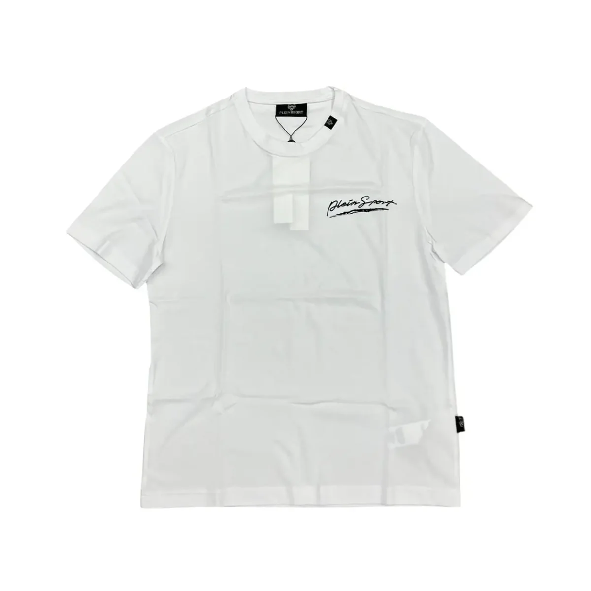 Plein Sport – S – T-shirt in cotone bianco con stampa nero