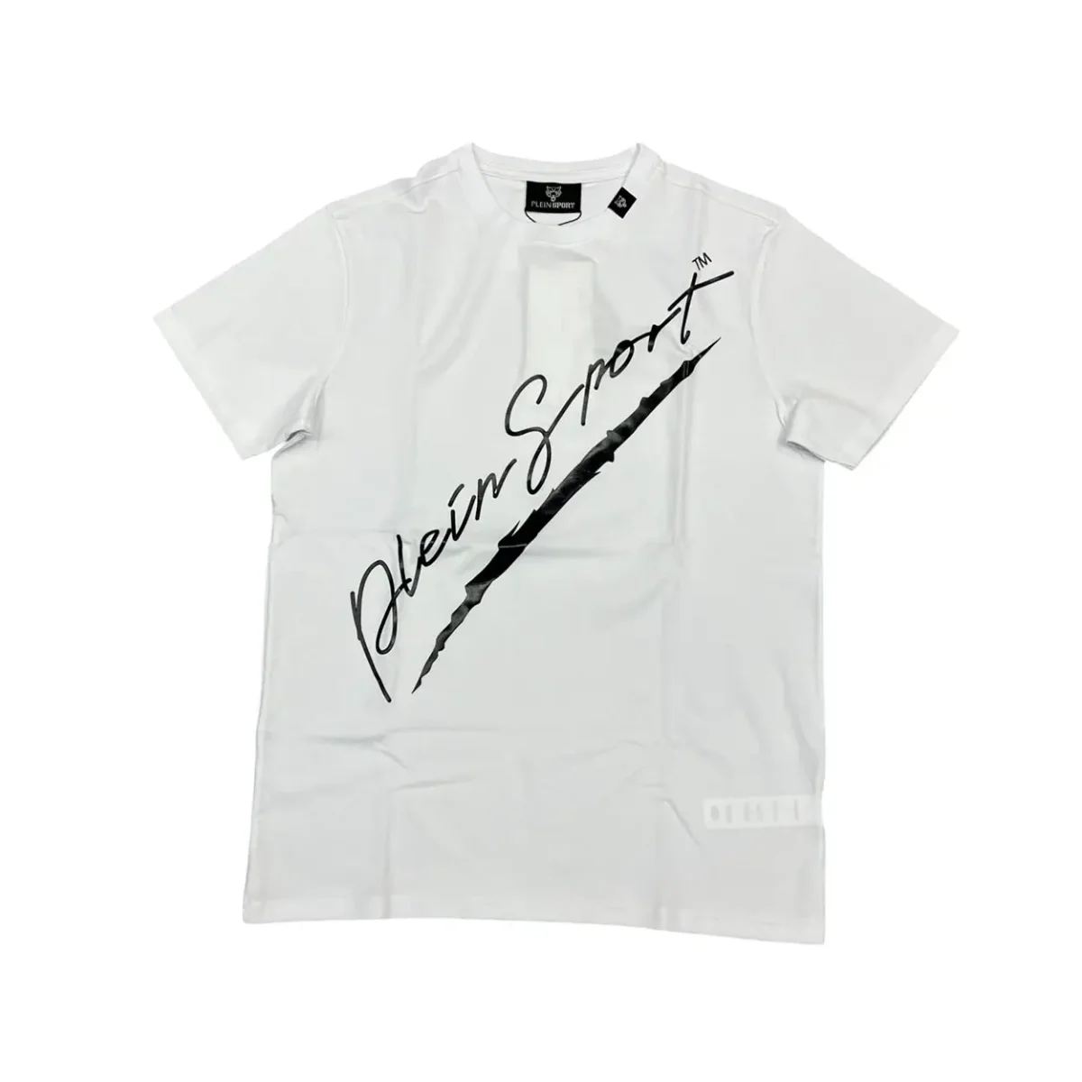 Plein Sport – S – T-shirt in cotone elasticizzato bianco con stampa nero