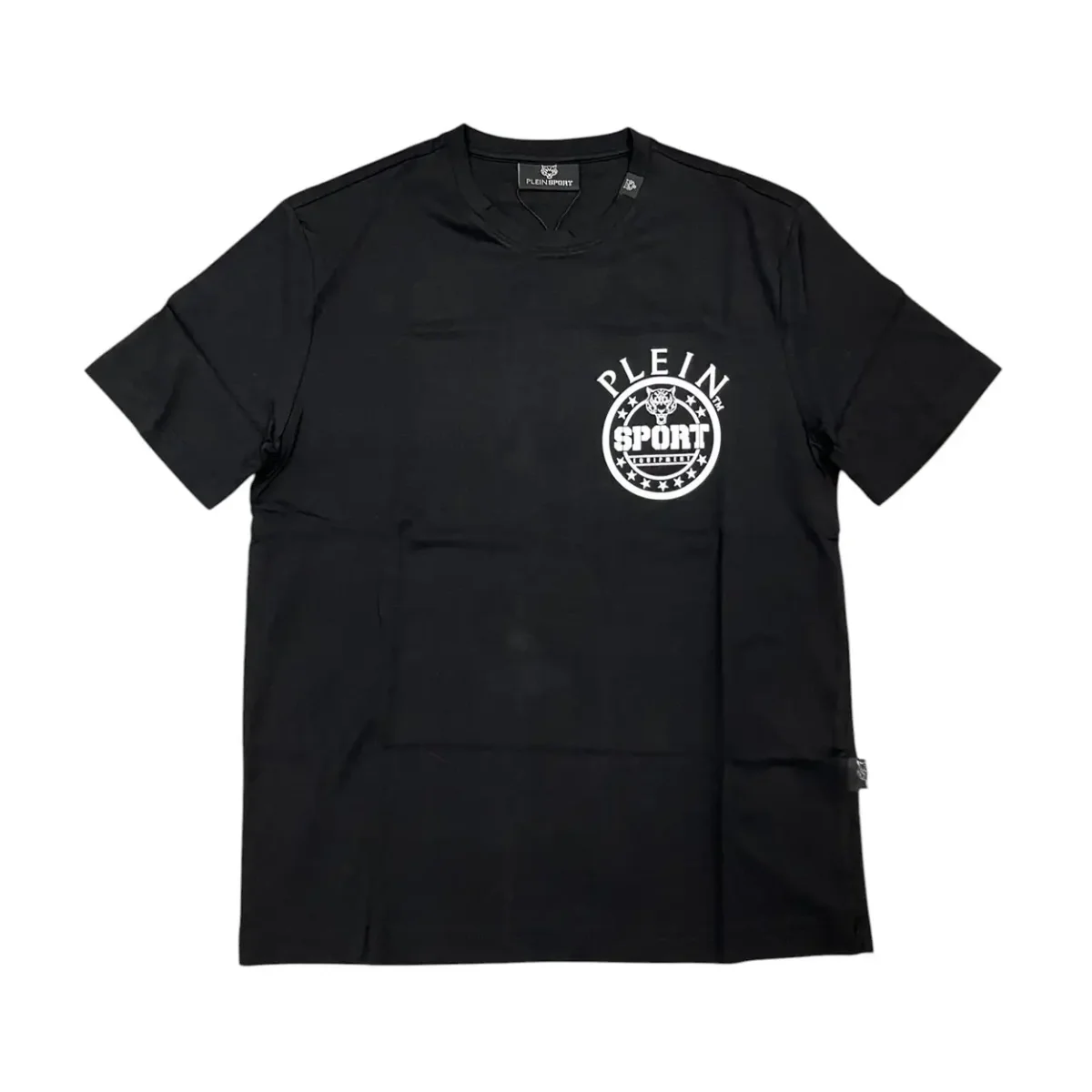 Plein Sport – T-shirt in cotone elasticizzato nero con stampa bianco