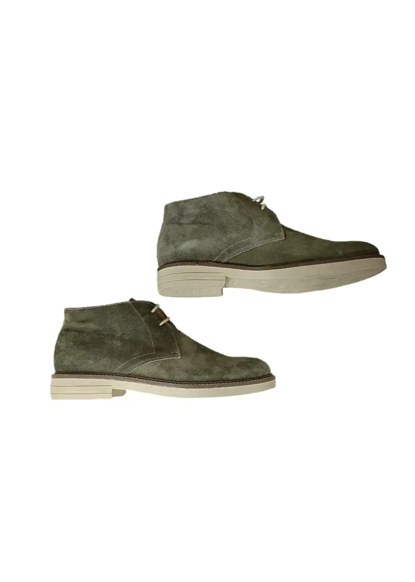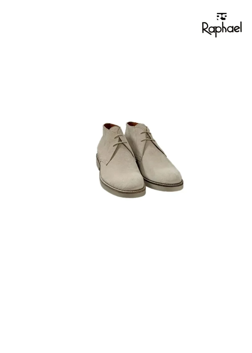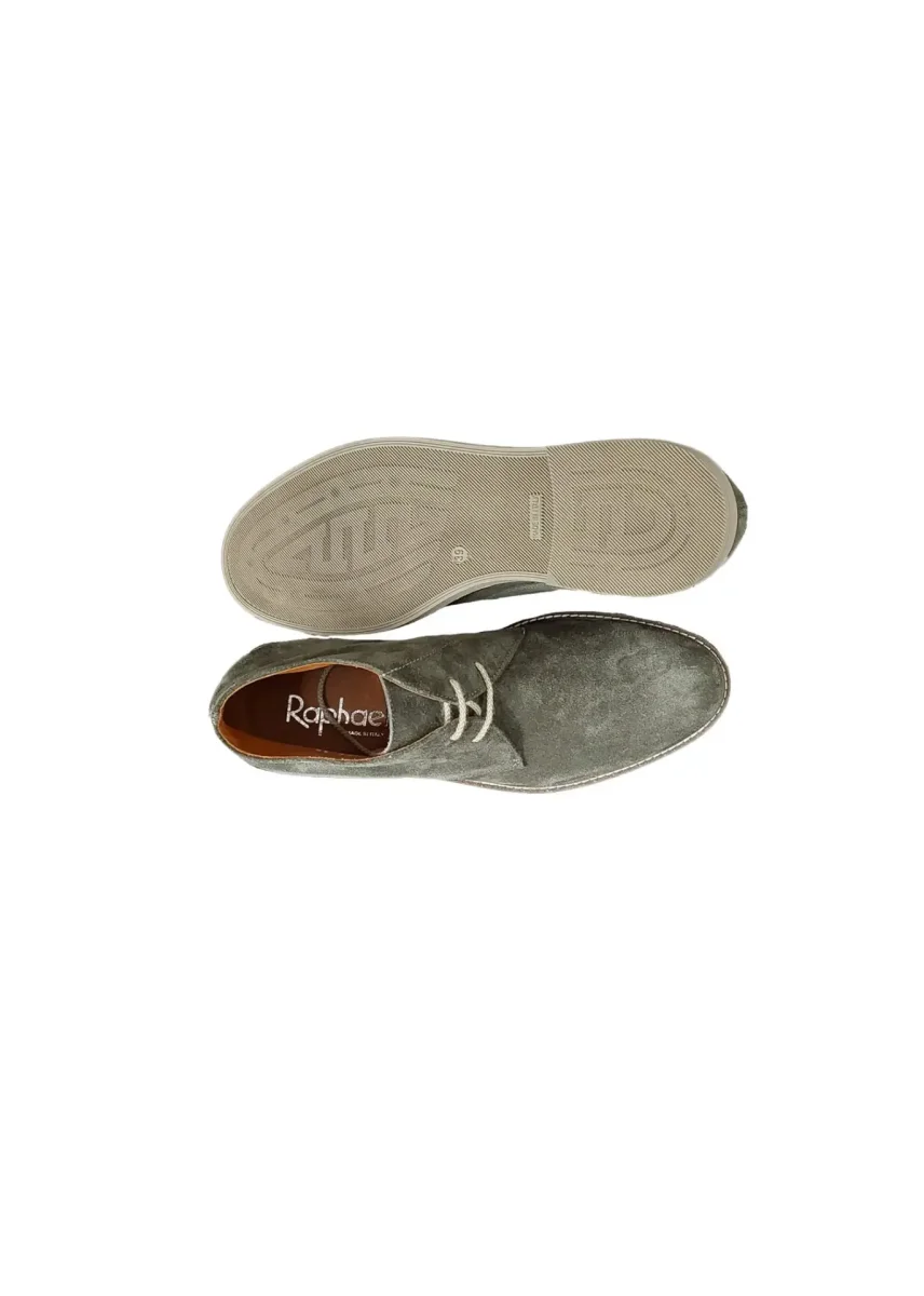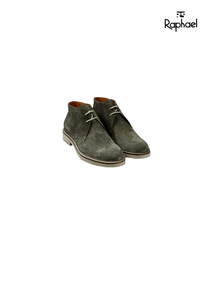 Polacchino uomo Raphael in scamosciato, chiusura con lacci, suola in cuoio cucita con gomma antiscivolo. โข lavorazione artigianale