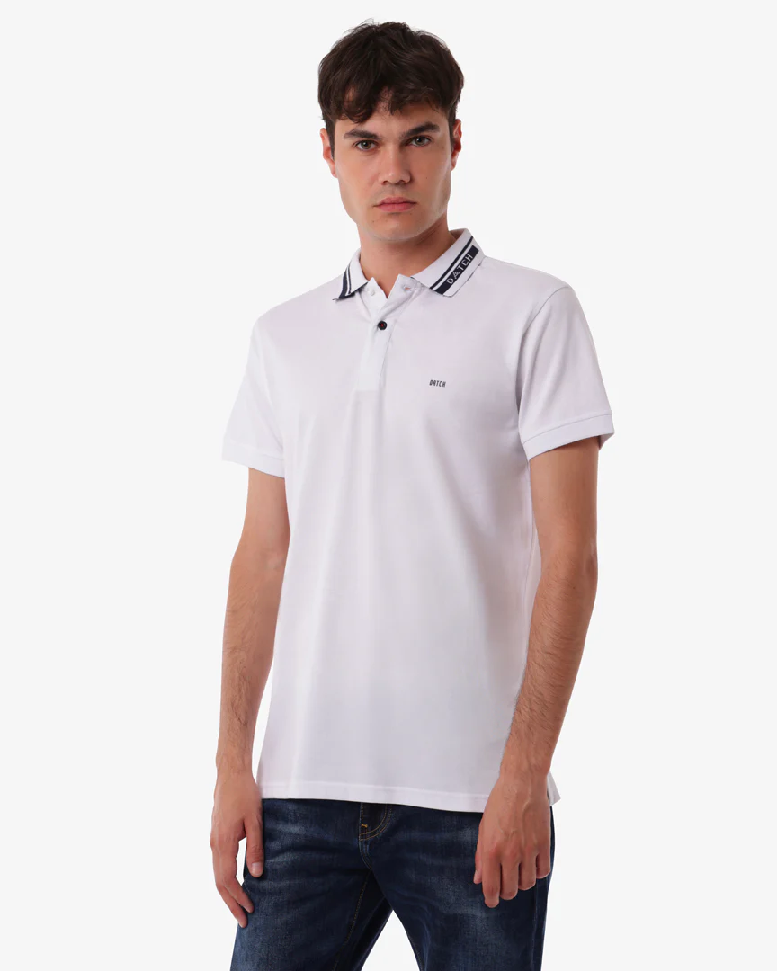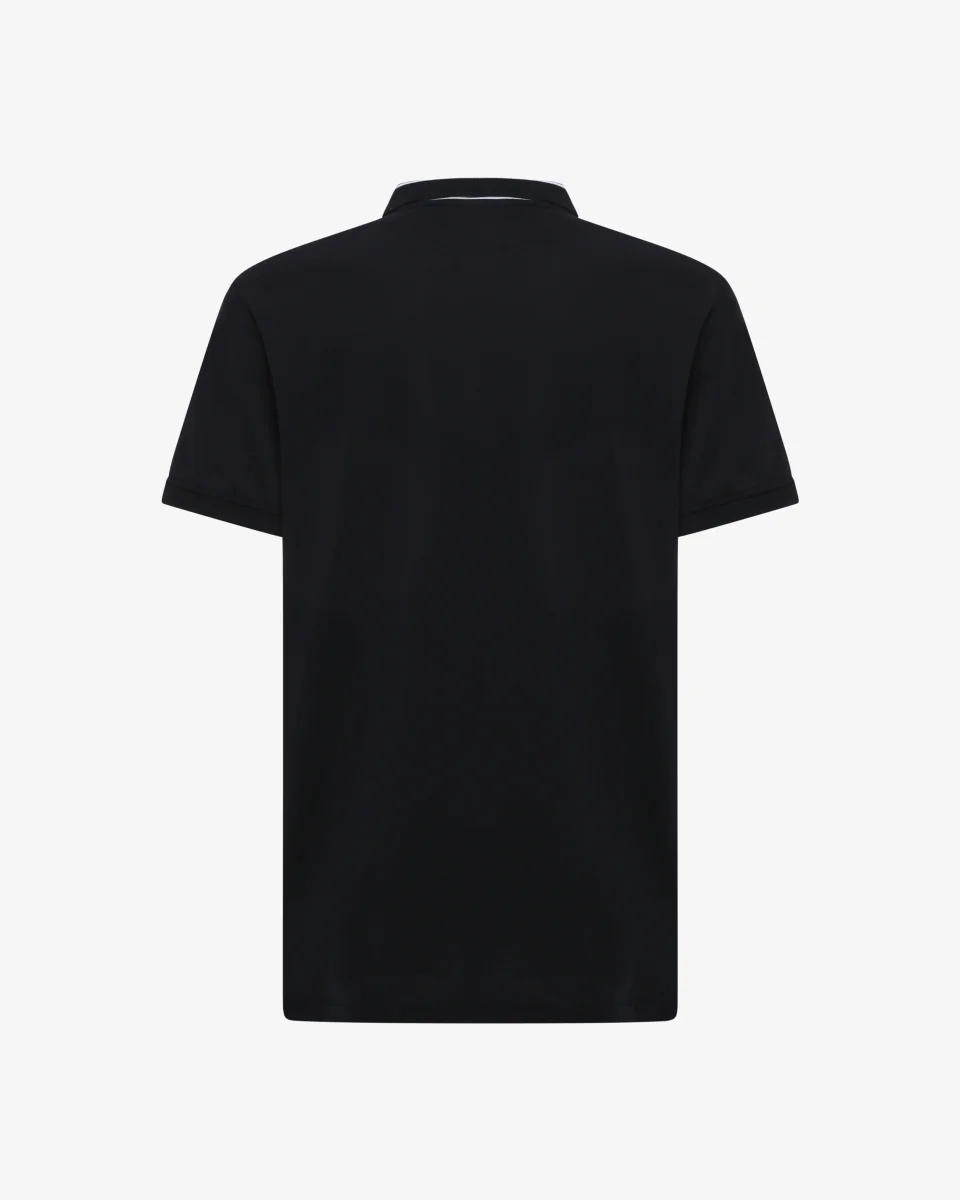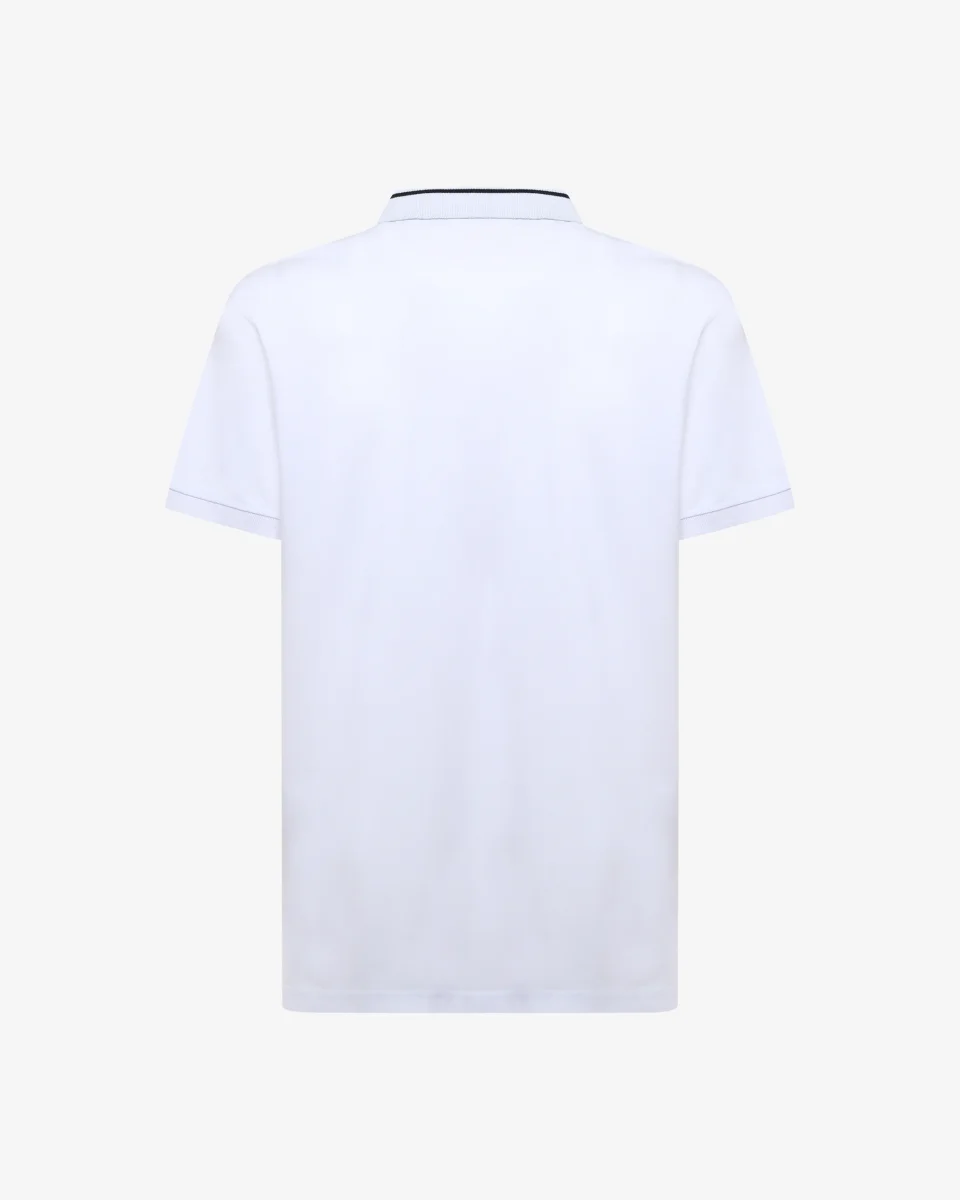 Polo a maniche corte con collo e polsini a coste, impreziosita da un micrologo laterale sul davanti. Stile minimal e raffinato per un look versatile.