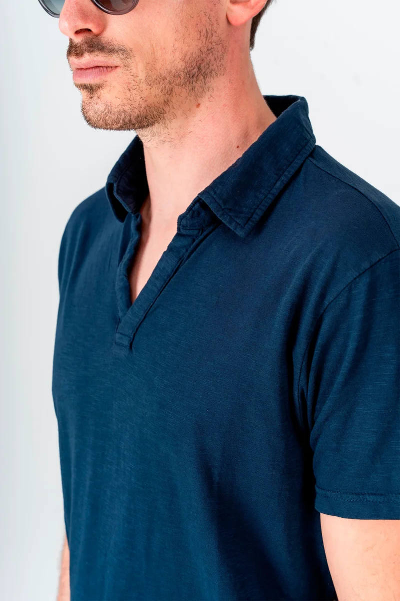 Polo in cotone con colletto, senza bottoni, fresca e perfetta per i look estivi, disponibile in diversi colori.