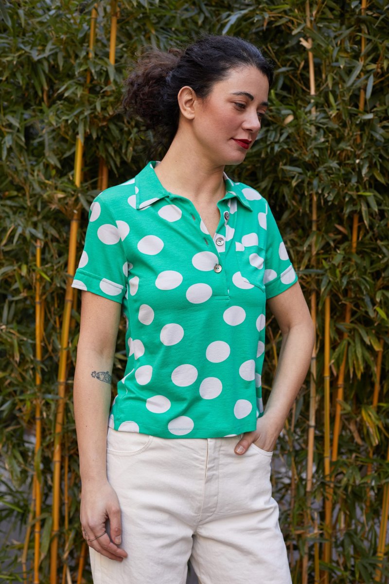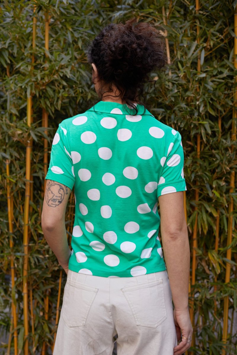 Polo Jackie in jersey verde acqua a pois