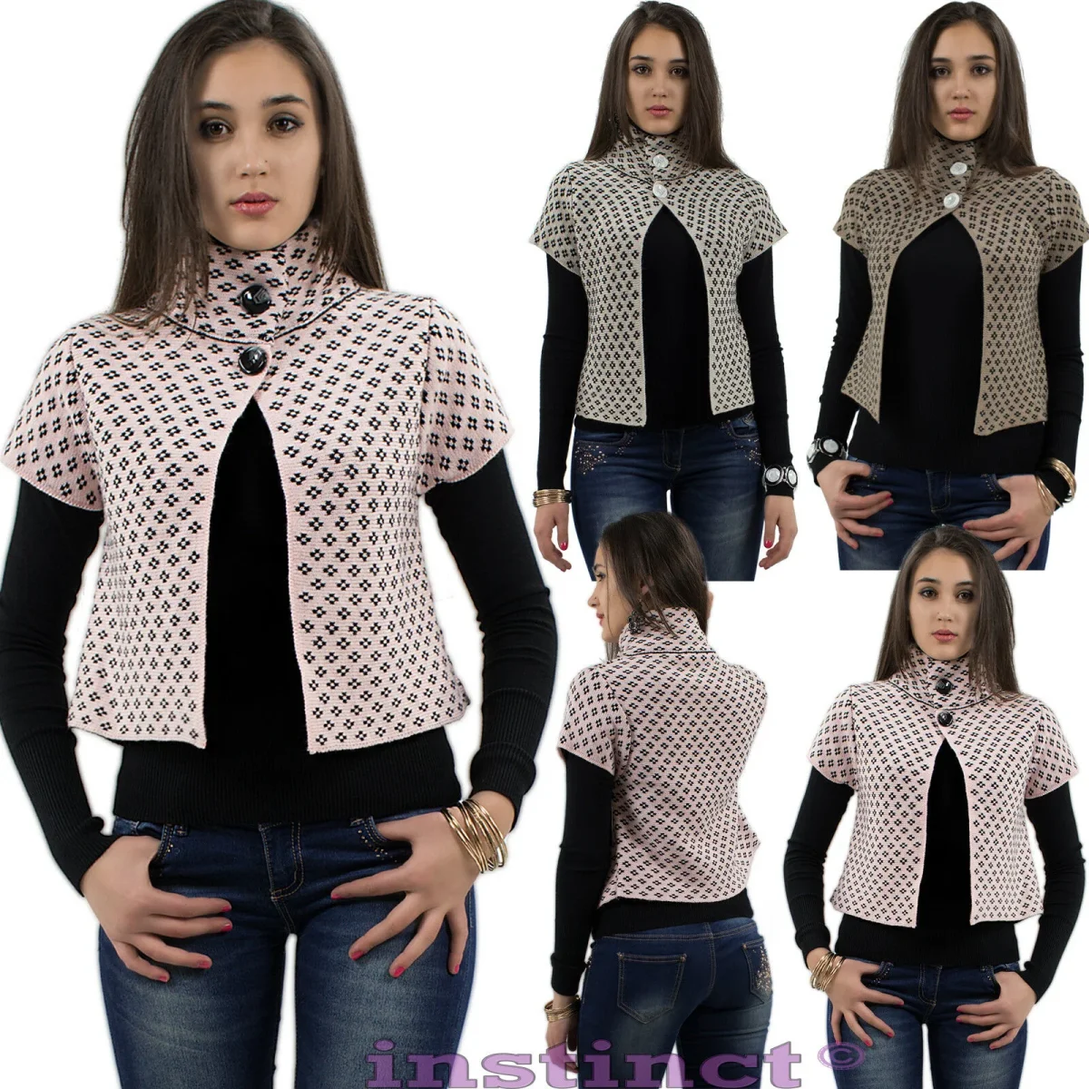Poncho donna corto bolero pull maglione mantella collo alto coprispalle IS504