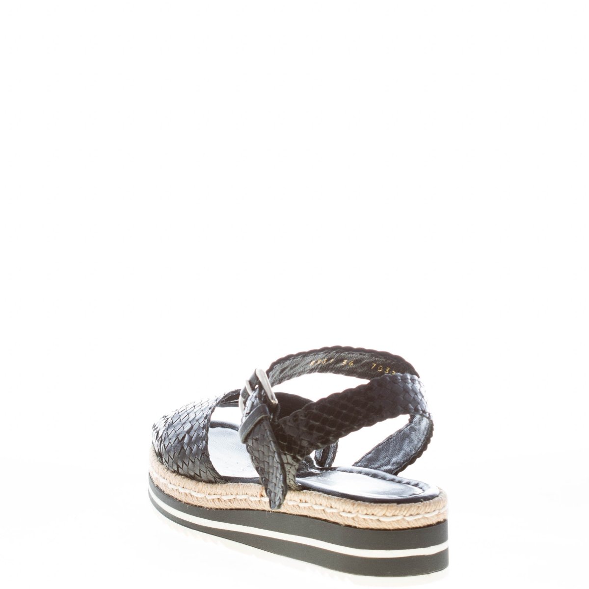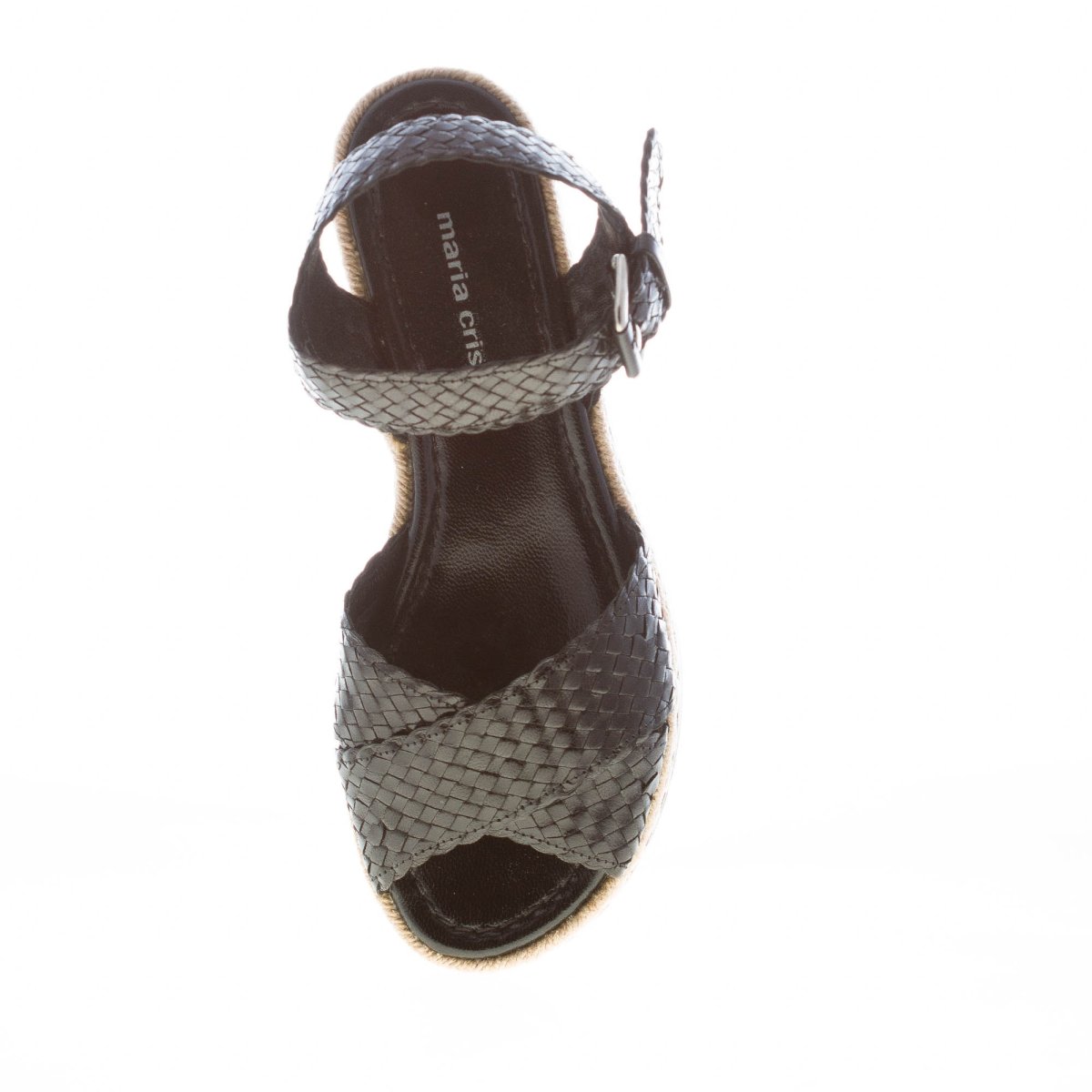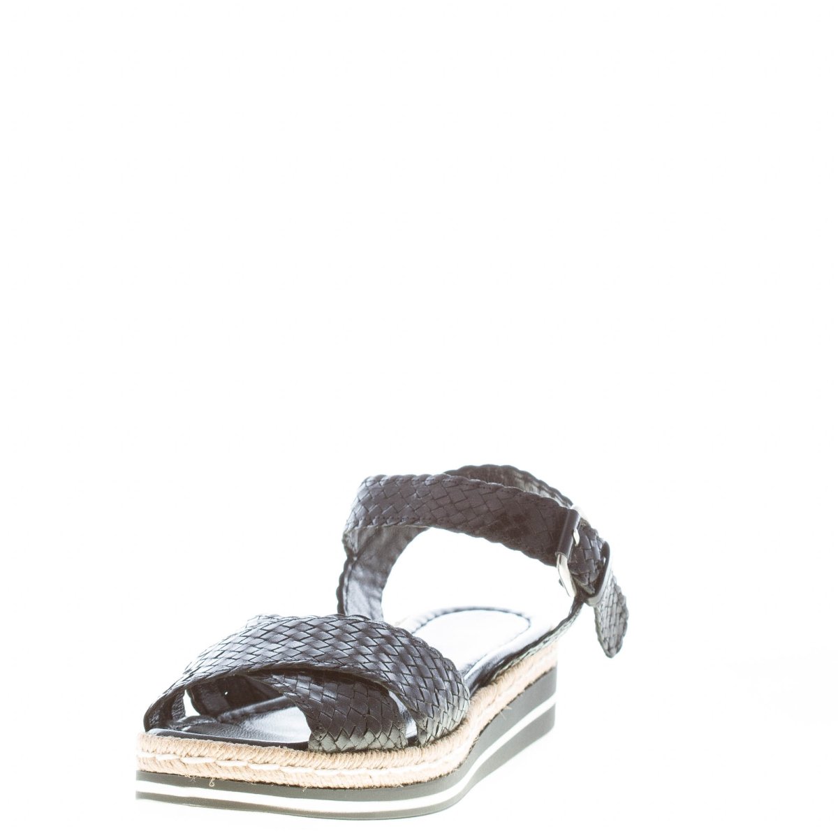 PONS QUINTANA (Mariacristina) donna sandalo Milan in pelle intrecciata NERO. Zeppa 4 cm