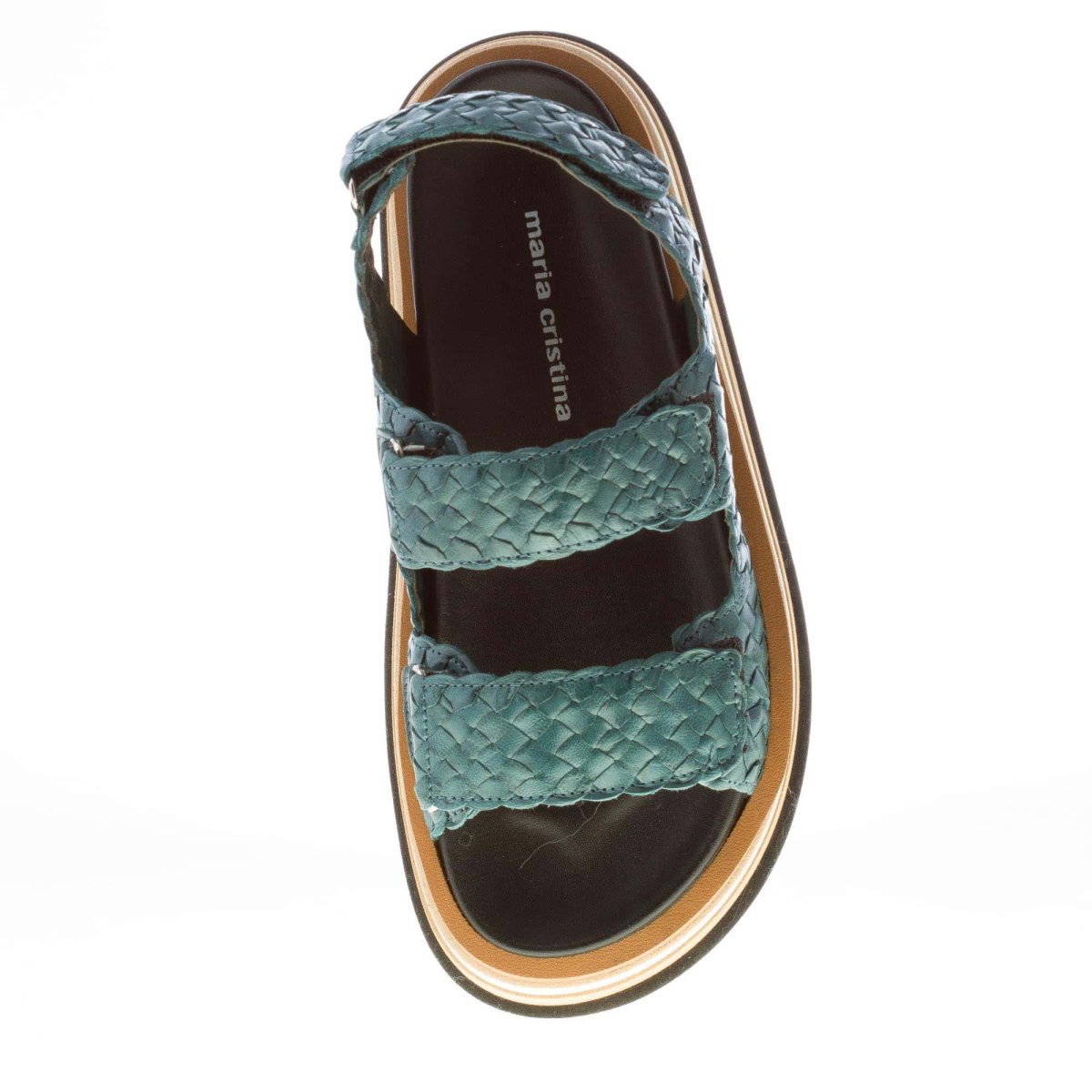 PONS QUINTANA (Mariacristina) donna sandalo platform Caiman in pelle intrecciata PETROLIO. Tacco 4 cm
