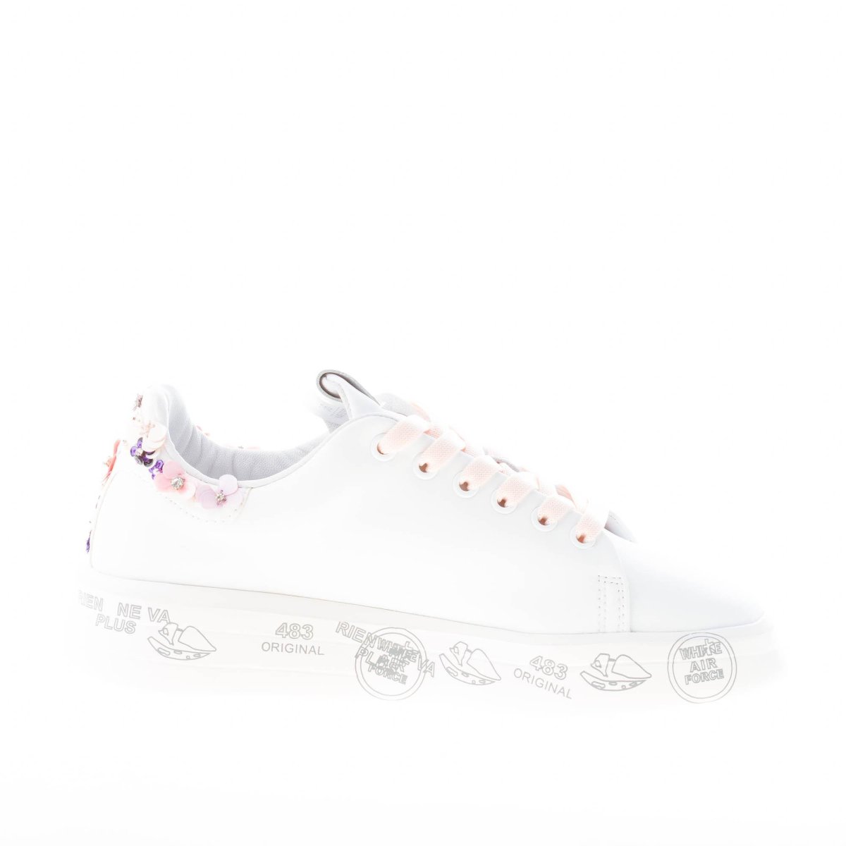 PREMIATA donna sneaker BELLE 6709 in pelle BIANCO con applicazione fiori