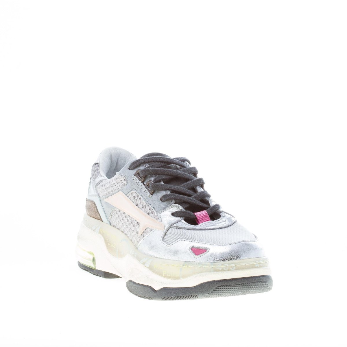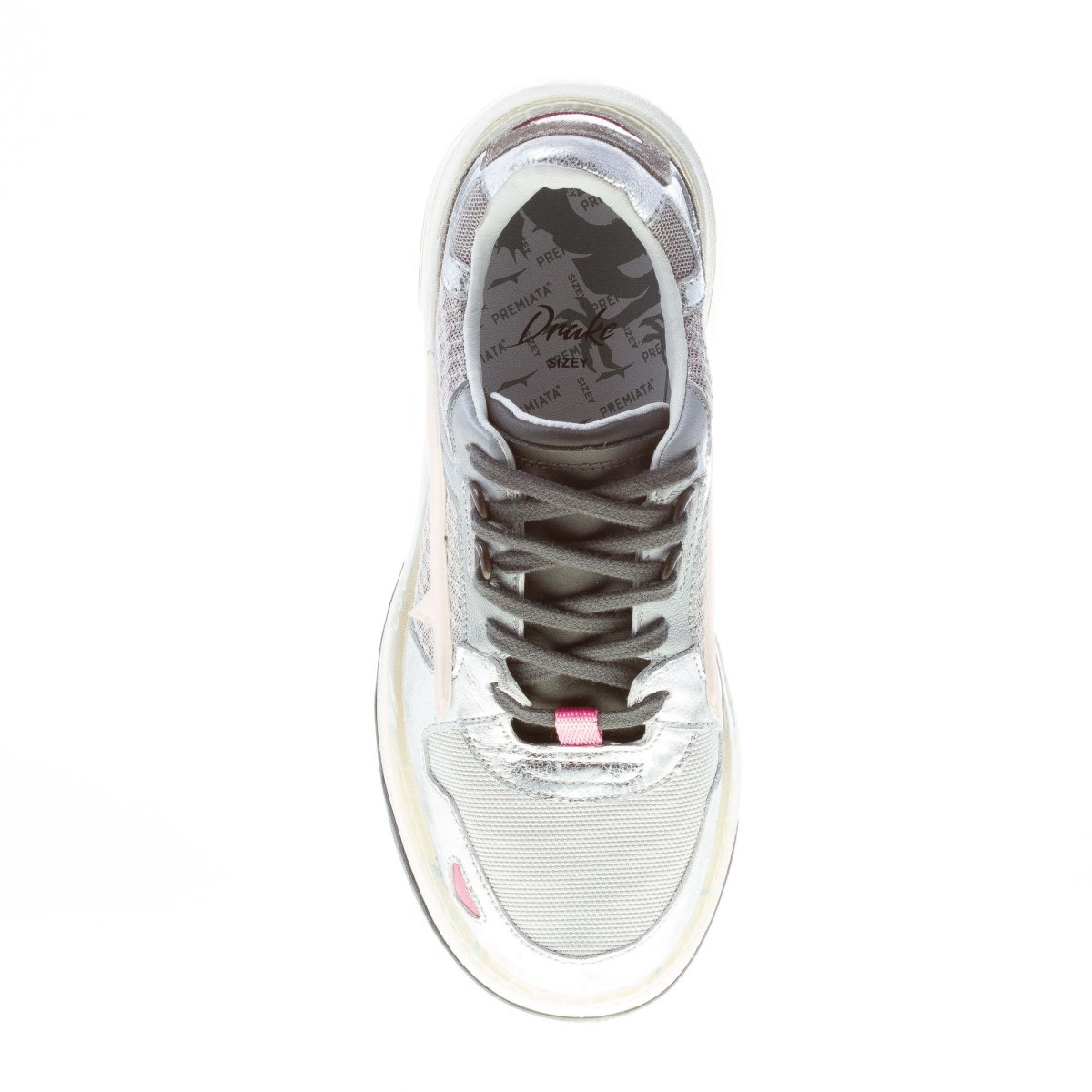 PREMIATA donna sneaker Draked 036 in tessuto tecnico e pelle ARGENTO con suola rialzata