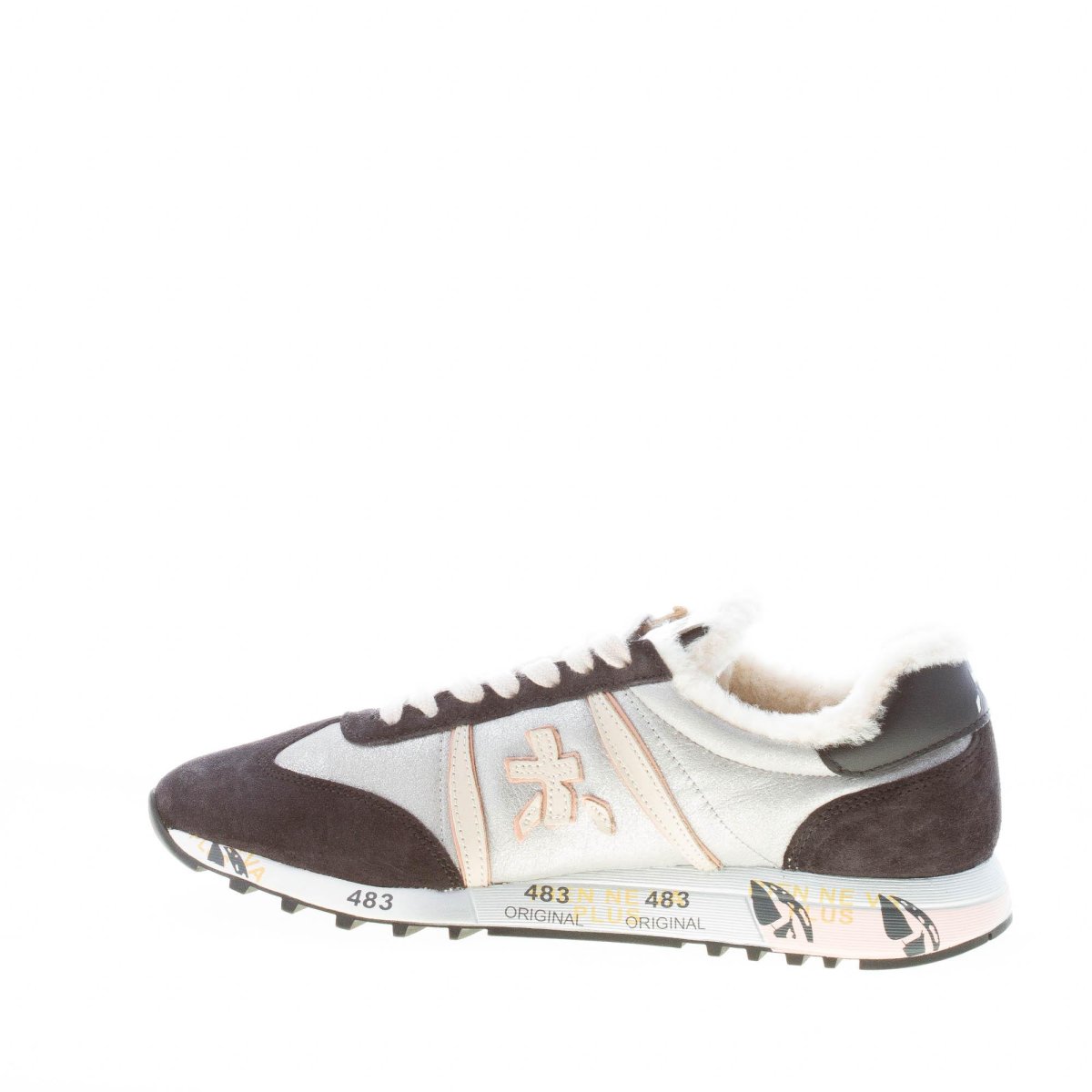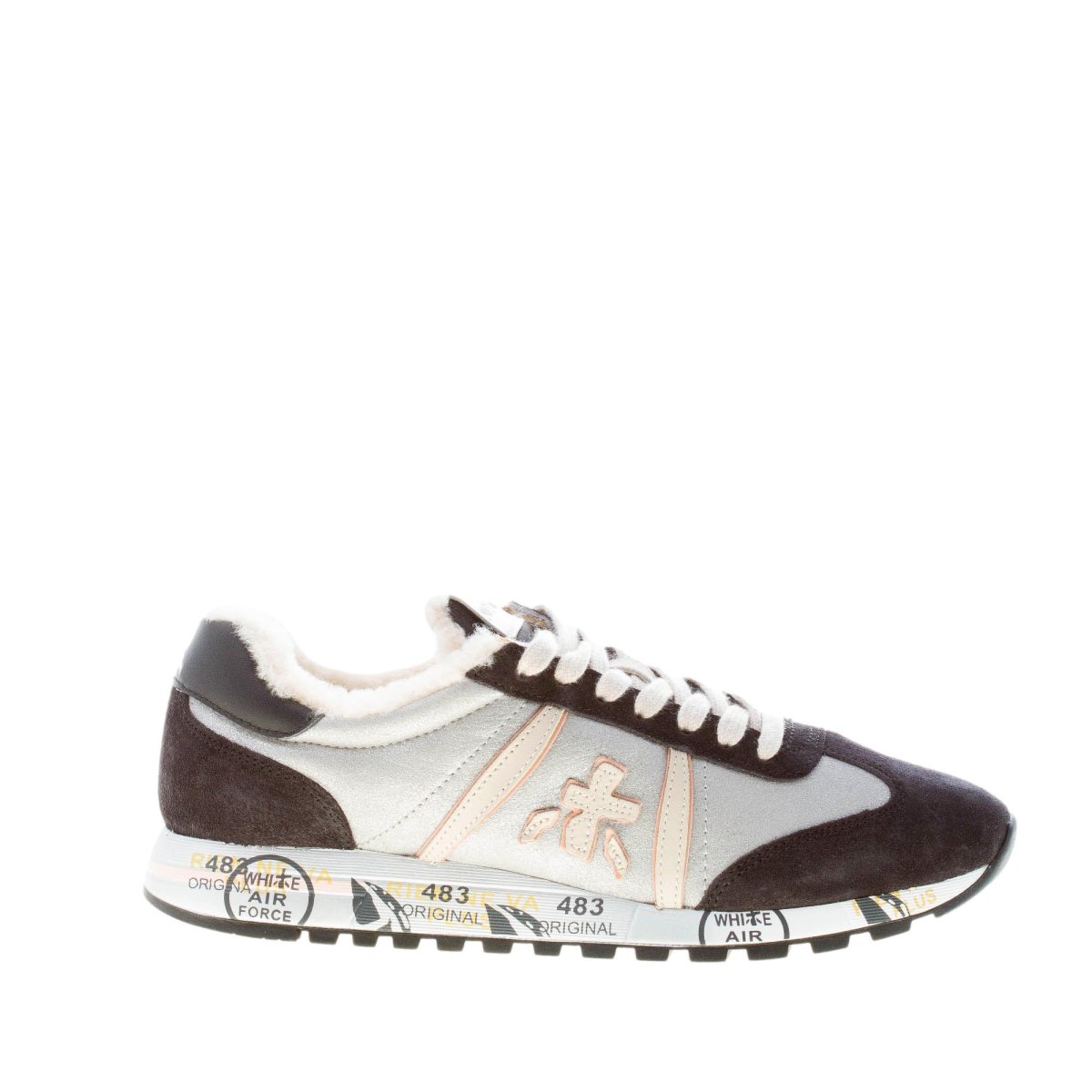 PREMIATA donna sneaker Lucy 6008 in pelle ARGENTO e camoscio NERO fodera pelliccia