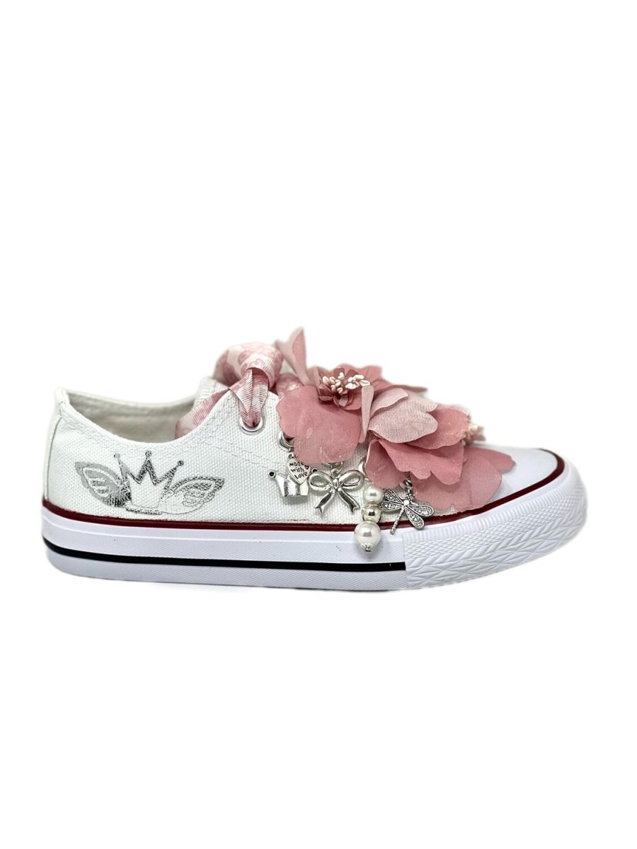 Scarpe basse modello Converse con nastri fiori e applicazioni rosa