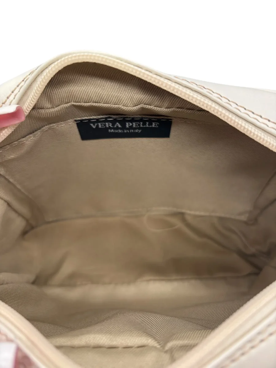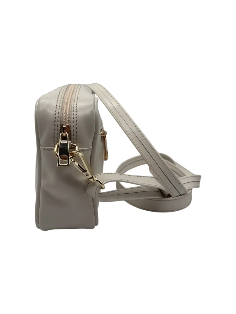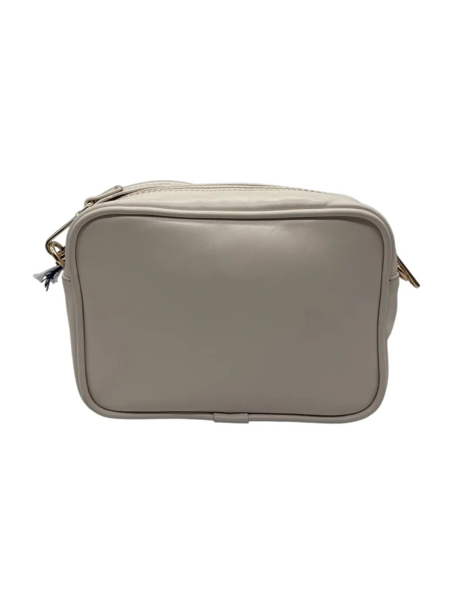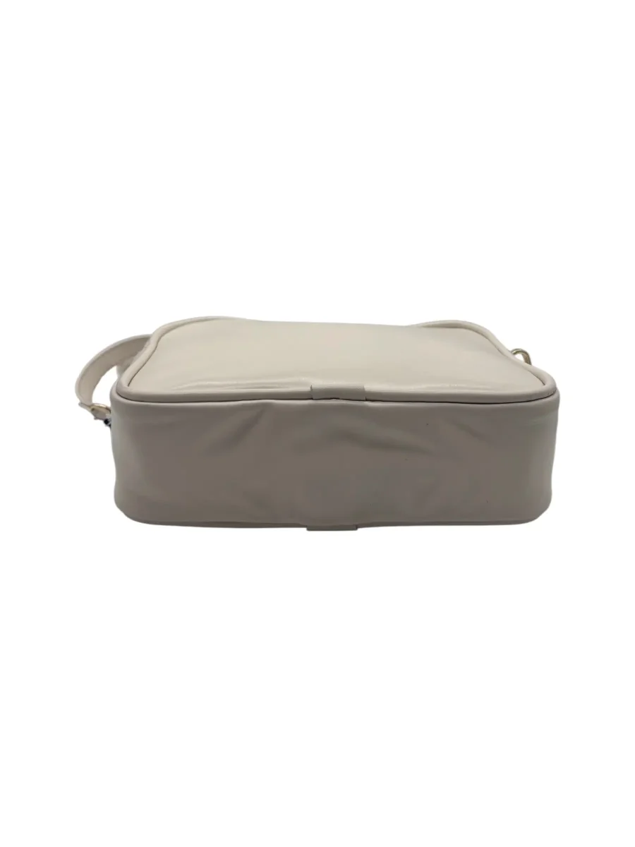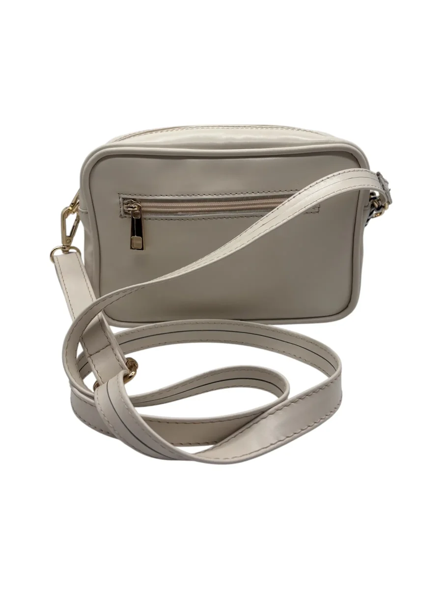 Borsa a tracolla realizzata in pelle color panna. Chiusura a zip in metallo dorato. Tracolla in pelle coordinata, removibile e regolabile. Comoda tasca posteriore a filo con chiusura a zip. Made in Italy. Misure: Altezza 15 cm, Larghezza 21 cm, Profondità 7 cm.