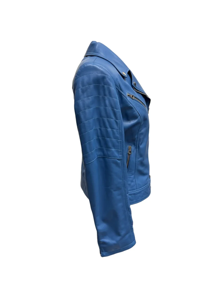 Raphael – Giubbino in pelle azzurra donna modello Chiodo – 44
