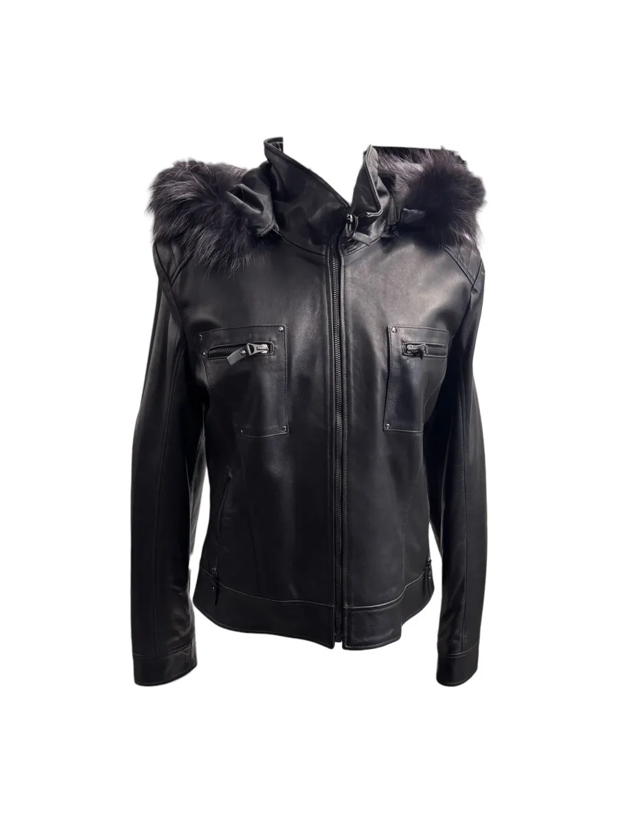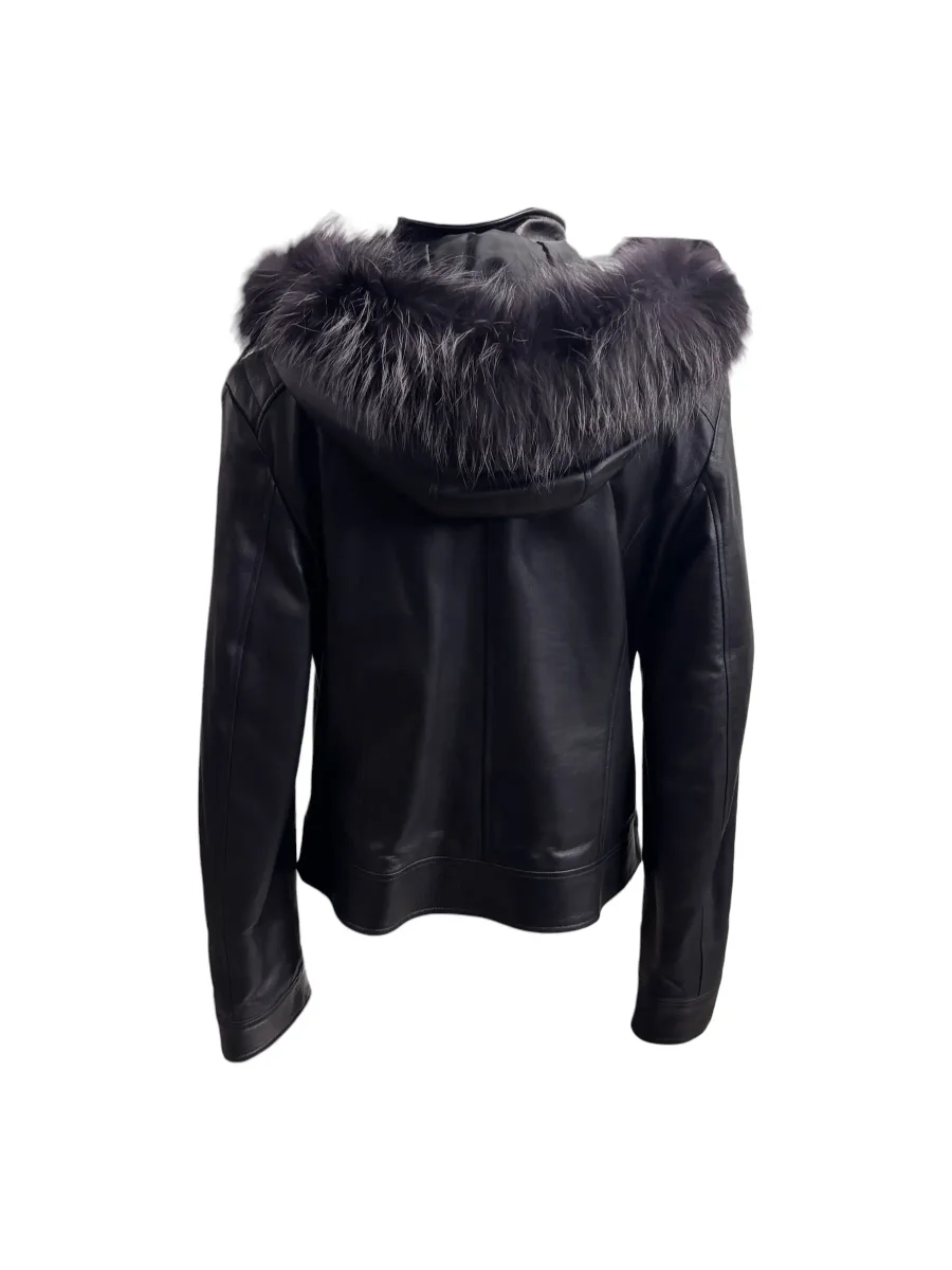 Raphael – Giubbino in pelle nero con bordo in volpe – 50