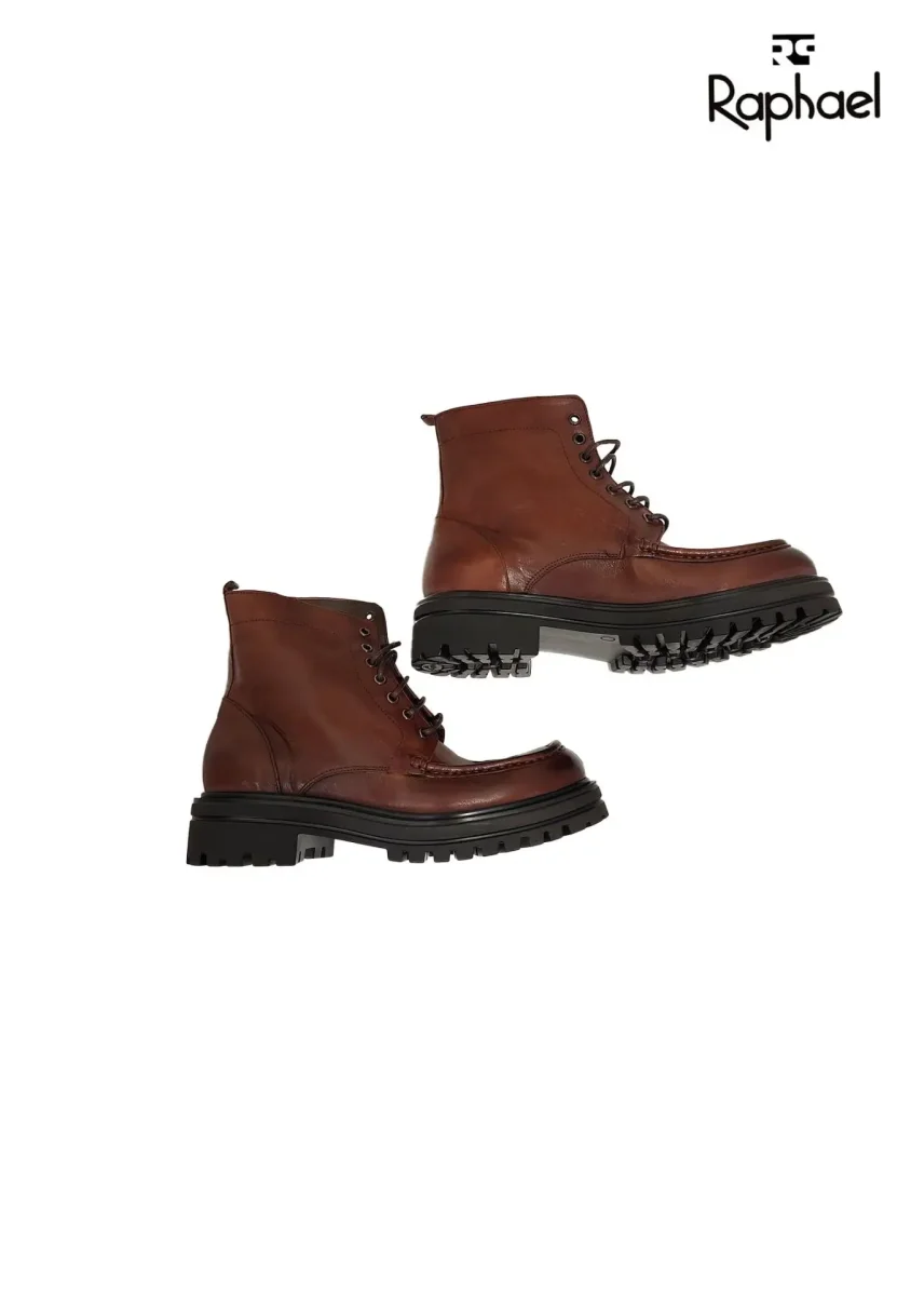 stivaletti uomo in vera pelle Raphael, occhielli in metallo con lacci, carrarmato antiscivolo, suola in gomma. โข Lavorazione artigianale