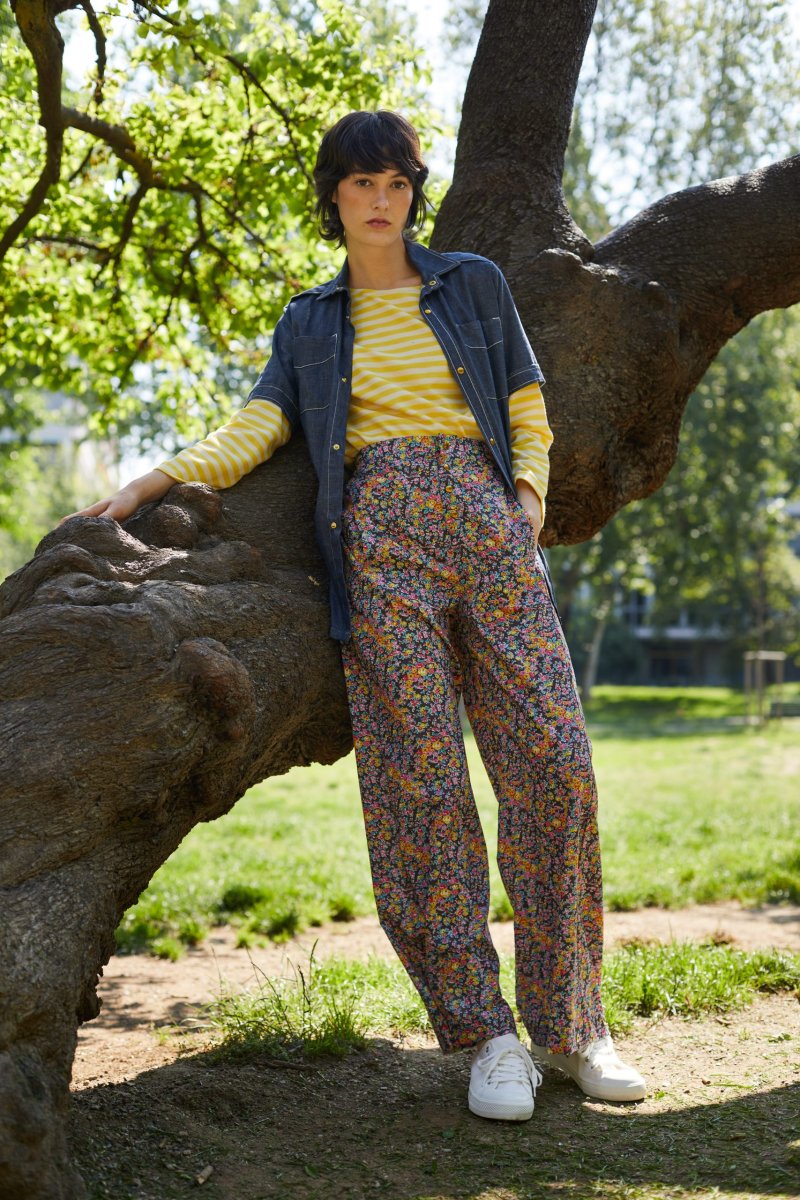 Abito Giada in seta a fiori su fondo giallo