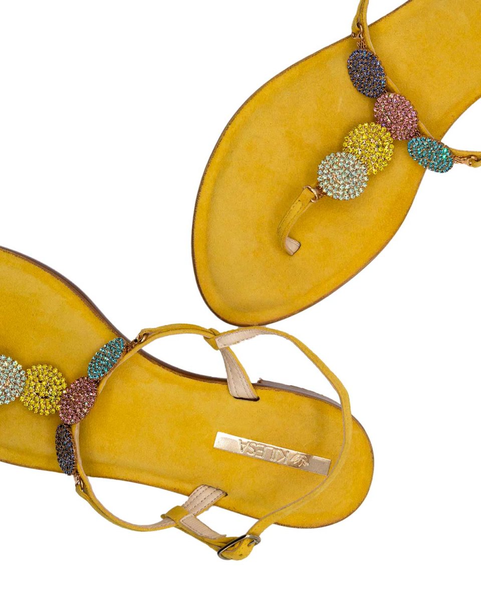 Giallo Materiali: pelle scamosciata, Swarowski Tomaia in cuoio toscano Made in Italy