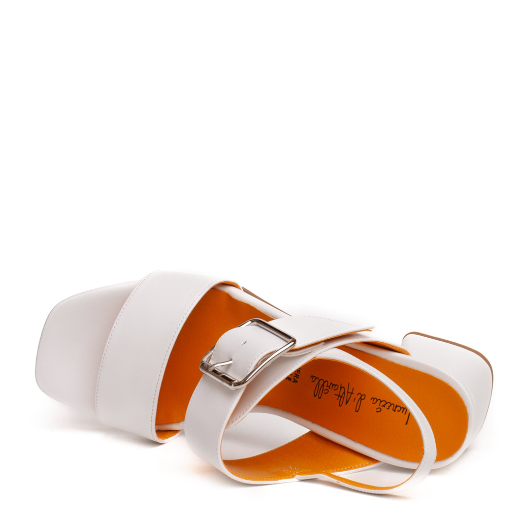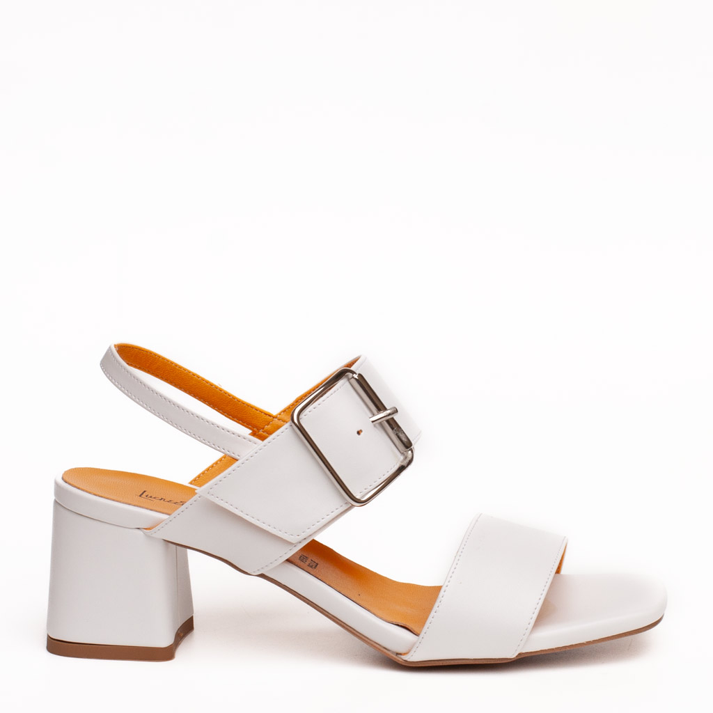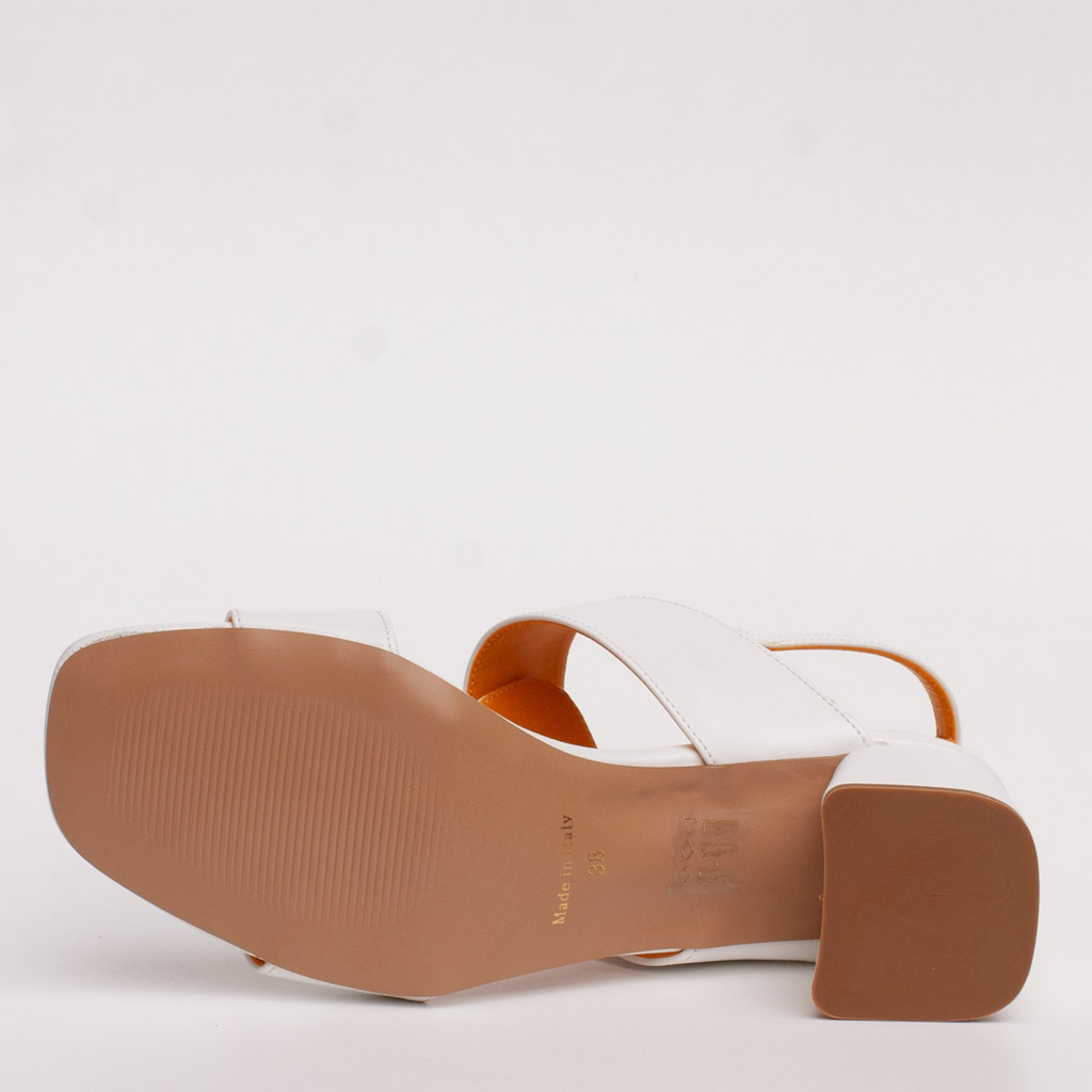 Sandalo in pelle. Cinturino regolabile sul collo del piede. Altezza tacco 6 cm. Suola in cuoio. Fodera in pelle.