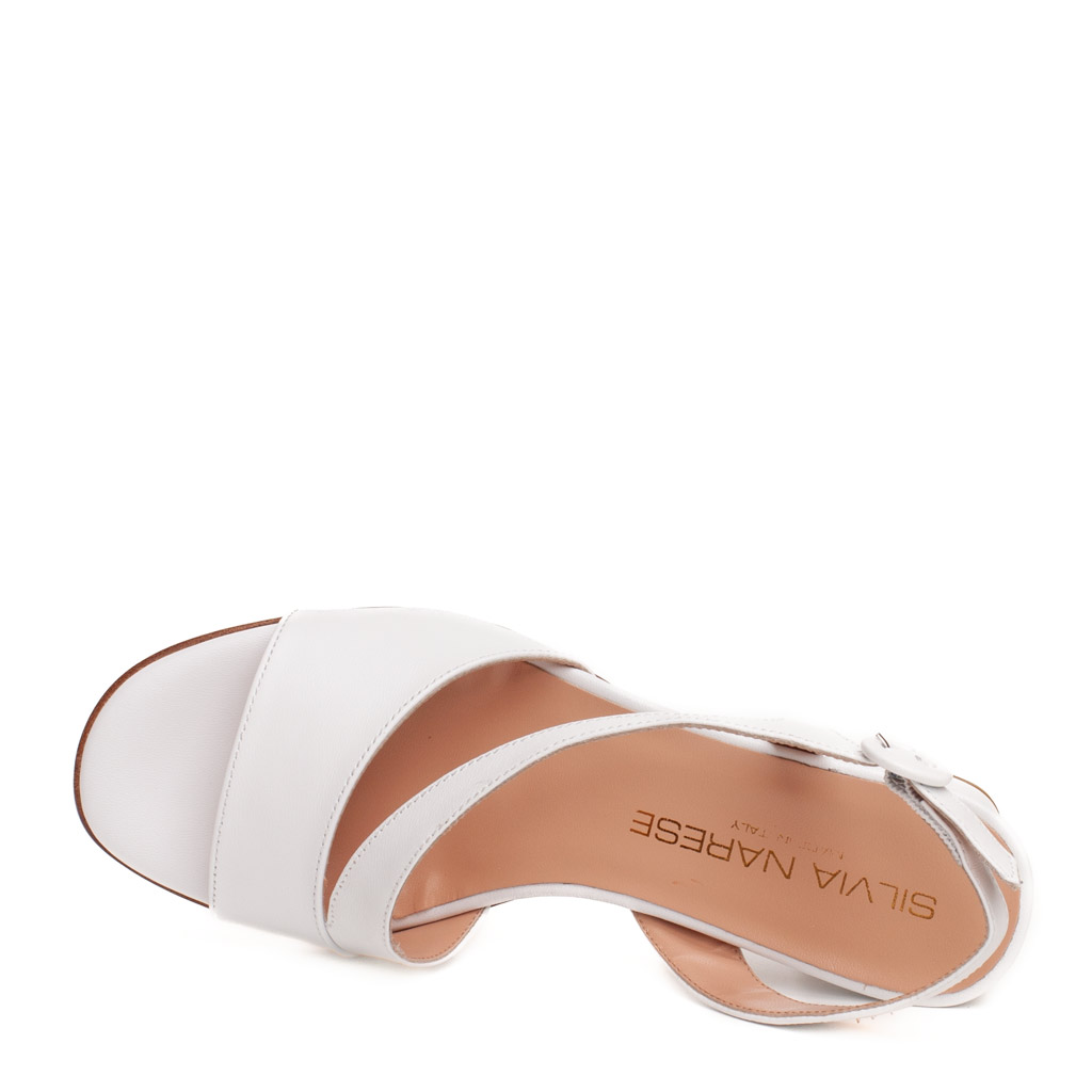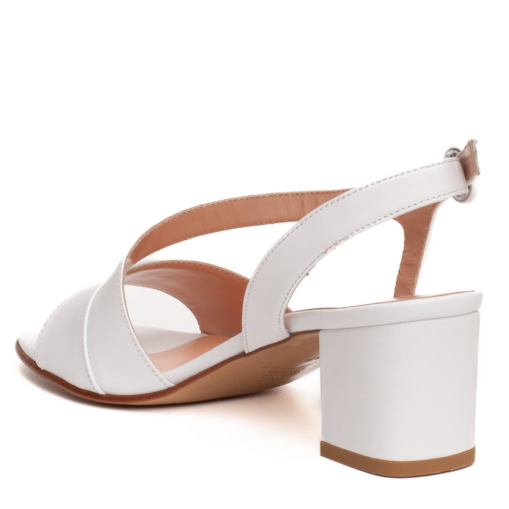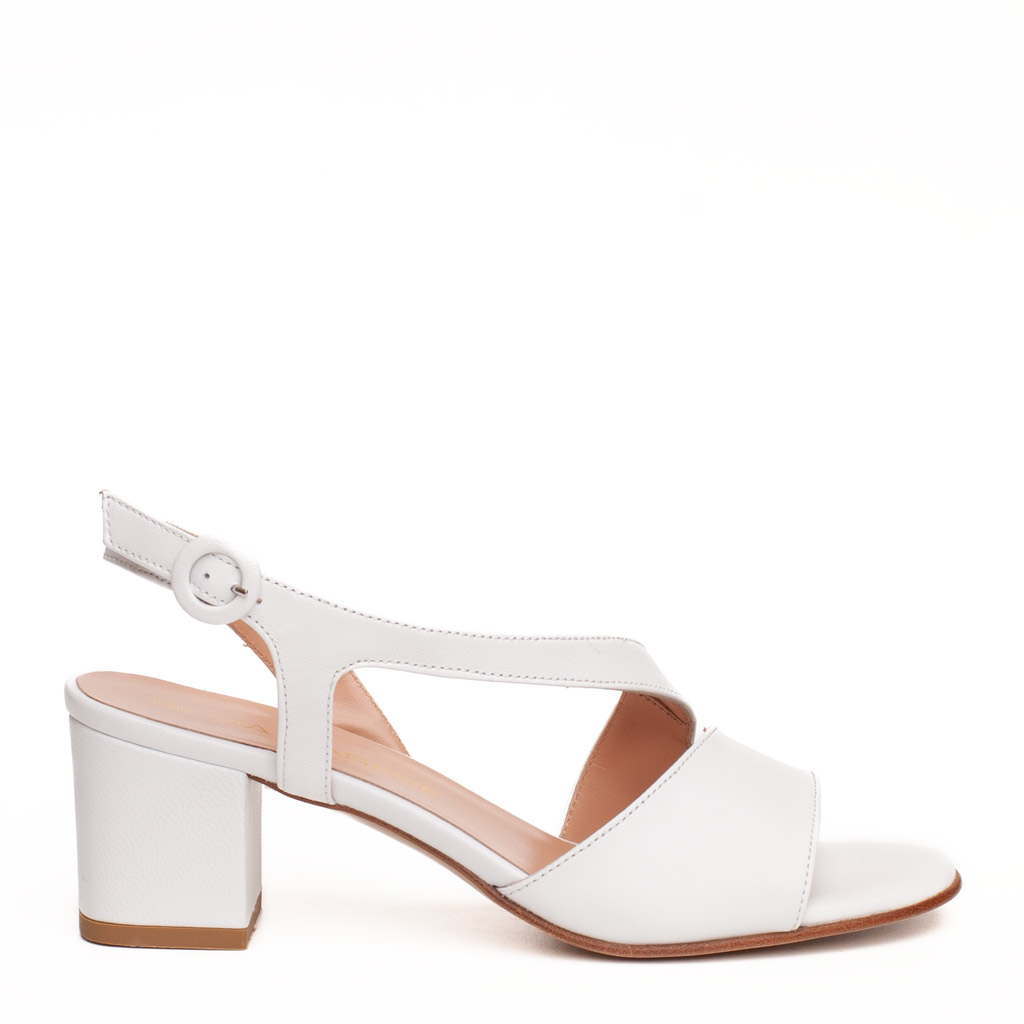 Sandalo in pelle con cinturino regolabile alla caviglia. Altezza tacco 6 cm. Suola in cuoio. Fodera in pelle. Made in Italy.