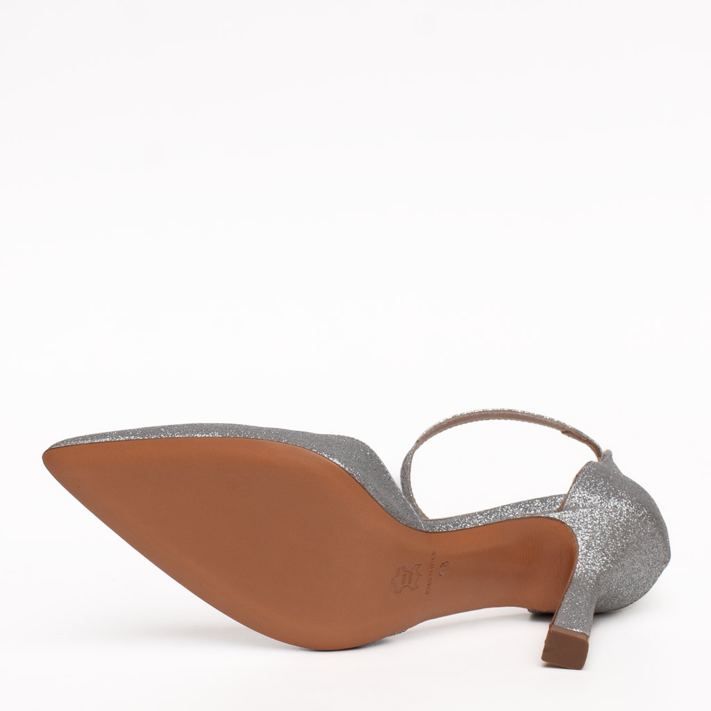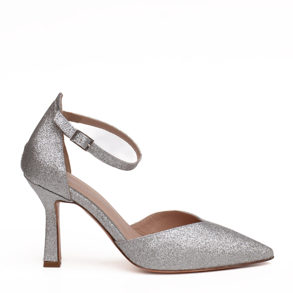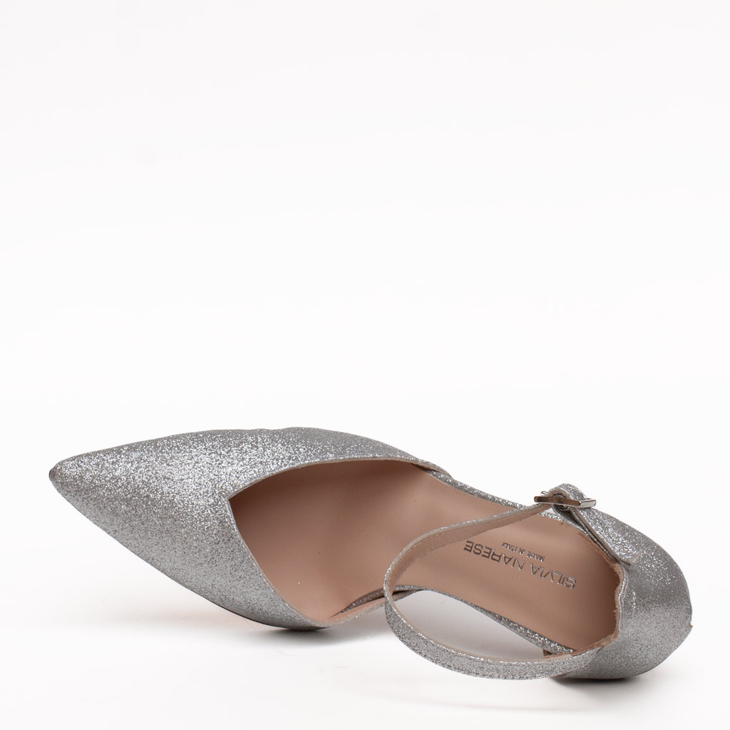 Scarpe Tacco Argento Glitter Eleganti con Cinturino