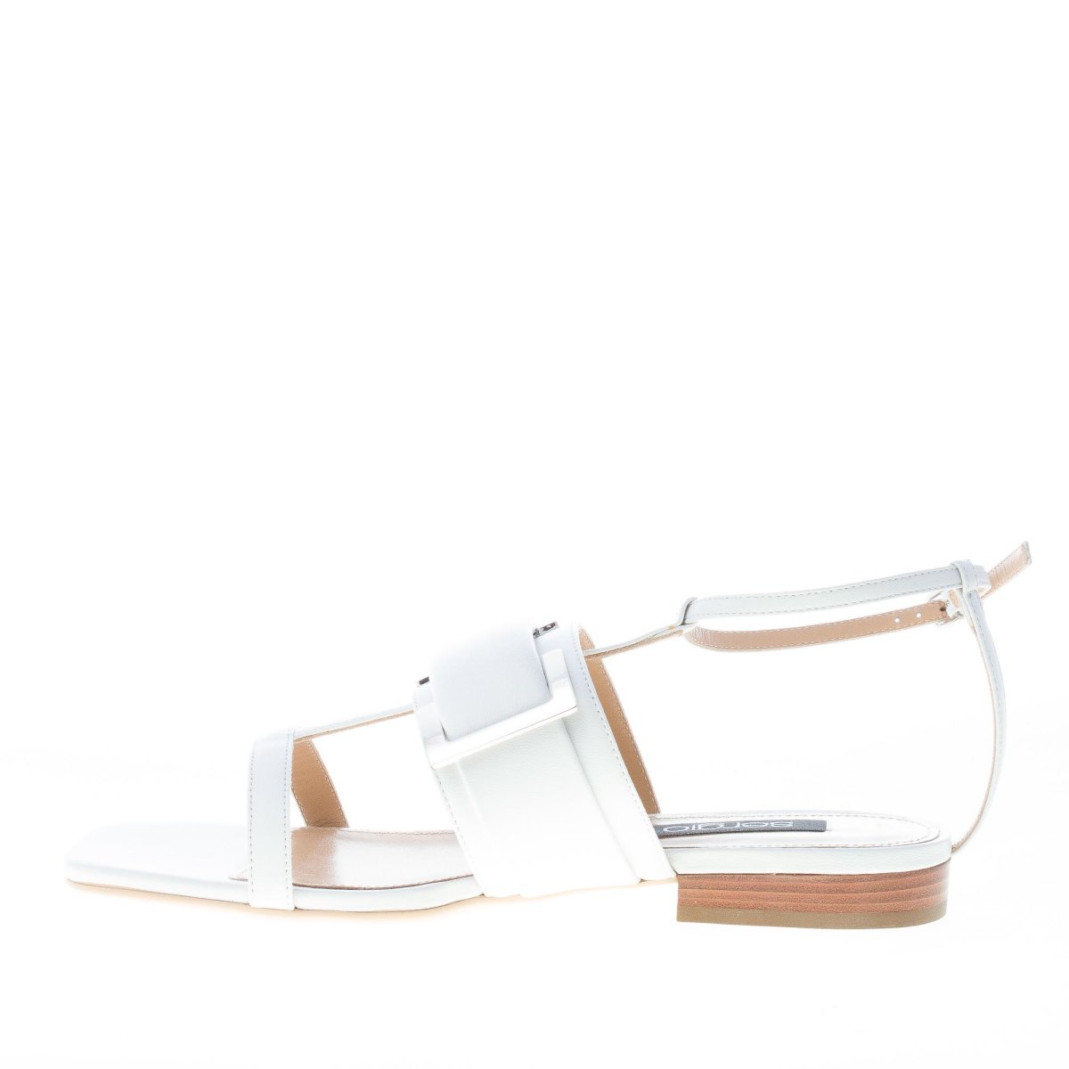 SERGIO ROSSI donna sandalo piatto SR Prince in pelle BIANCO con maxi fibbia argento