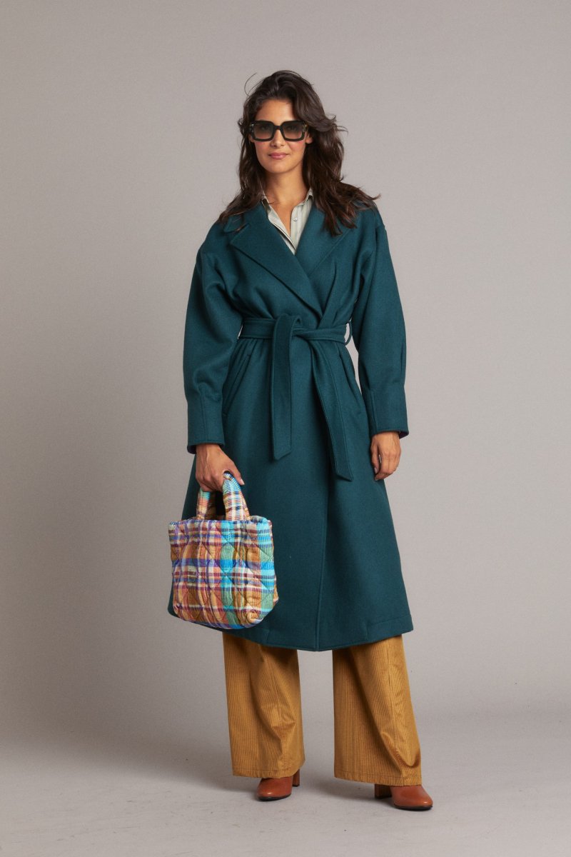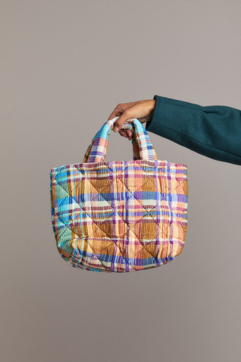 Shopping bag in cotone trapuntato a quadri multicolor
